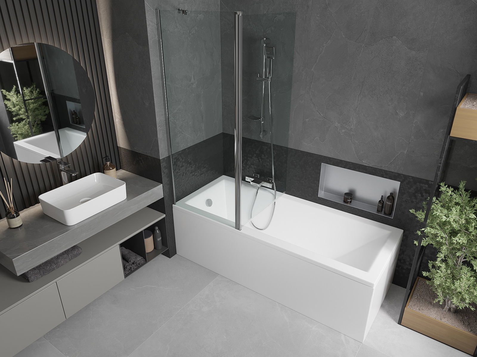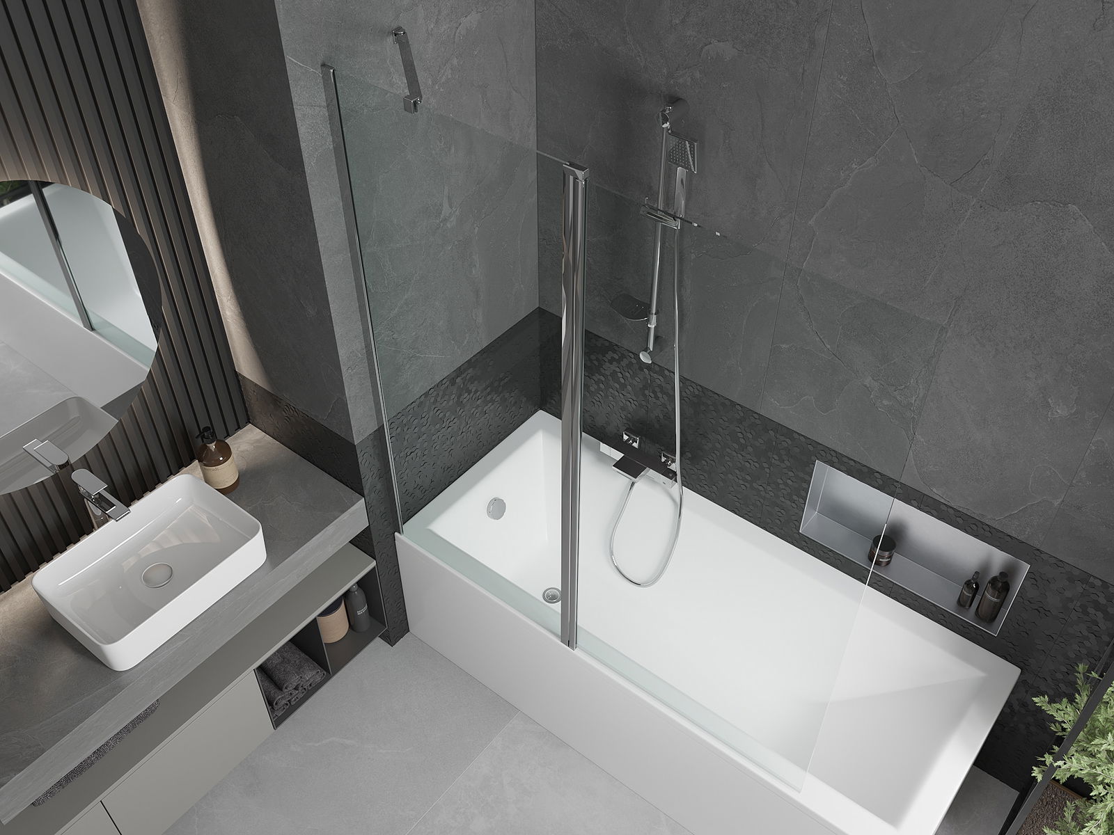 Ecranul are o aripă în mișcare cu posibilitatea de pliere. Această soluție economisește mai mult spațiu în baie și vă permite să utilizați liber spațiul rămas atunci când nu folosim zona de baie.