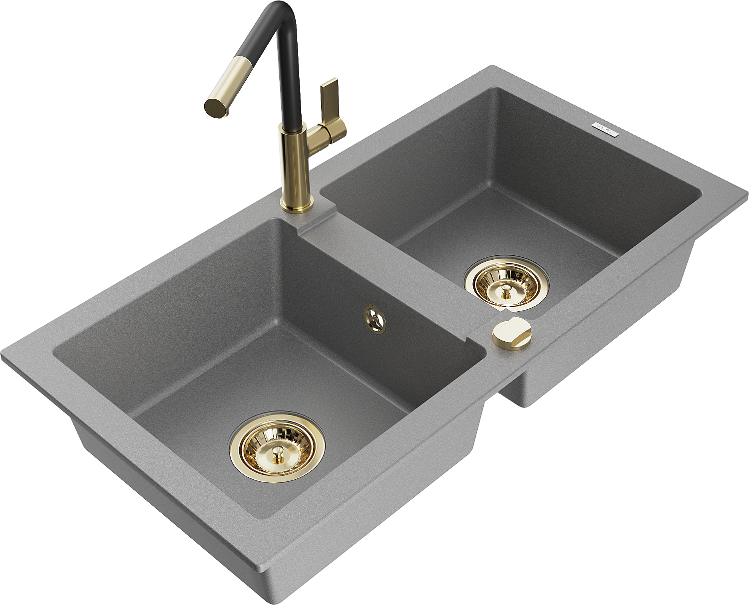 Mexen Mario chiuvetă de bucătărie din granit cu 2 compartimente și baterie Flora, gri - 6504-71-670401-57-G