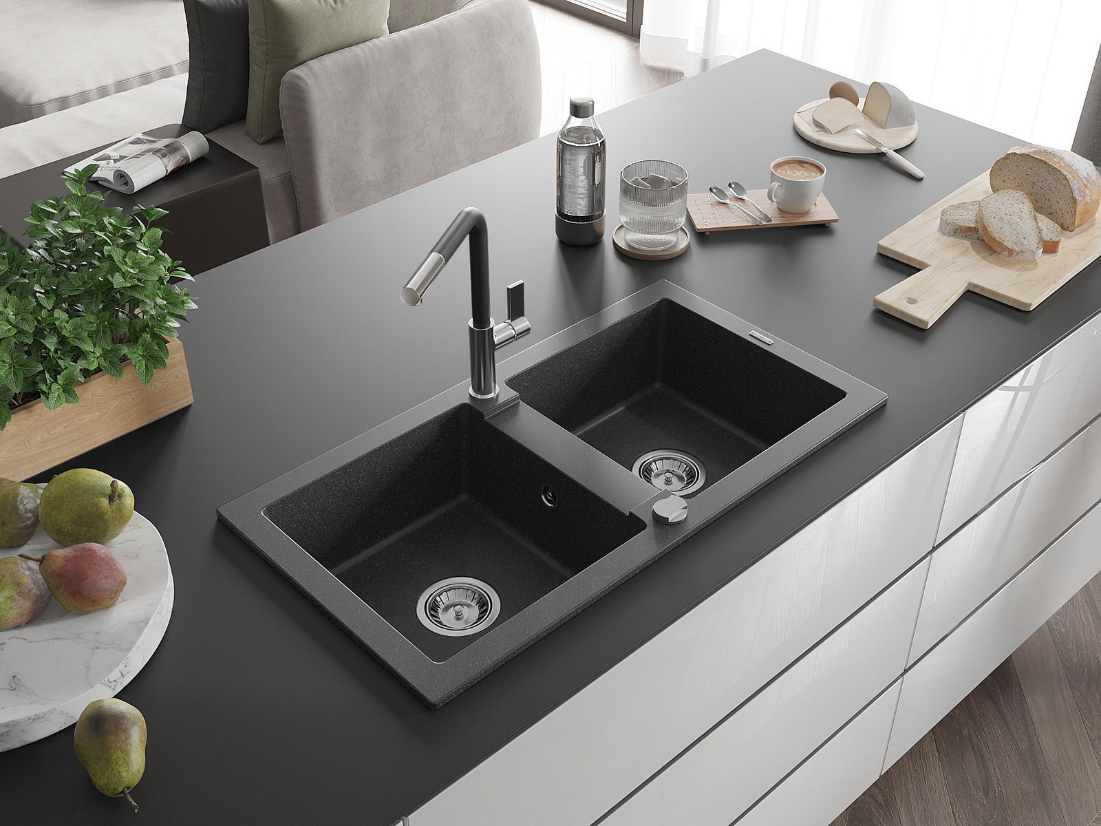 Suprafața chiuvetei este rezistentă la pete și decolorarea, datorită căreia este ușor de curățat și își păstrează culoarea mult timp. Estetică și practic completarea fiecărei bucătării.