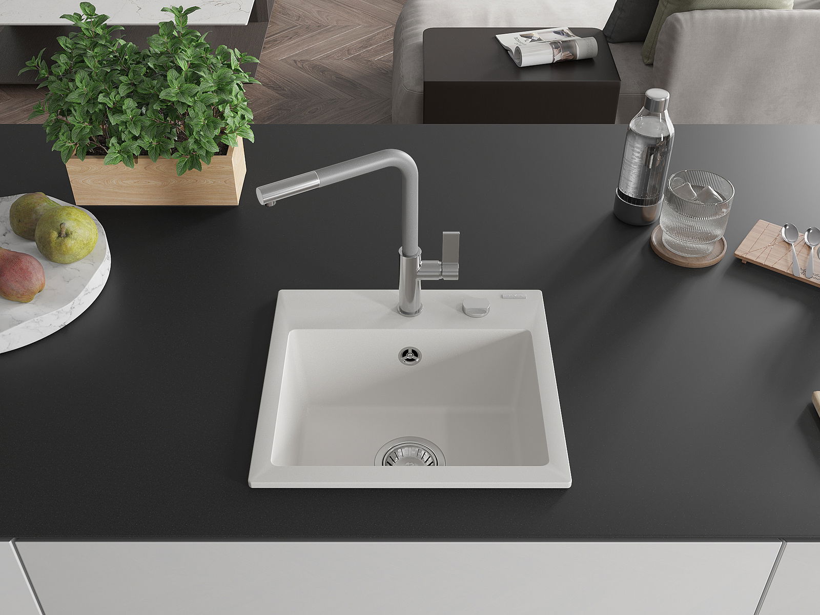 Suprafața chiuvetei este rezistentă la pete și decolorarea, datorită căreia este ușor de curățat și își păstrează culoarea mult timp. Estetică și practic completarea fiecărei bucătării.