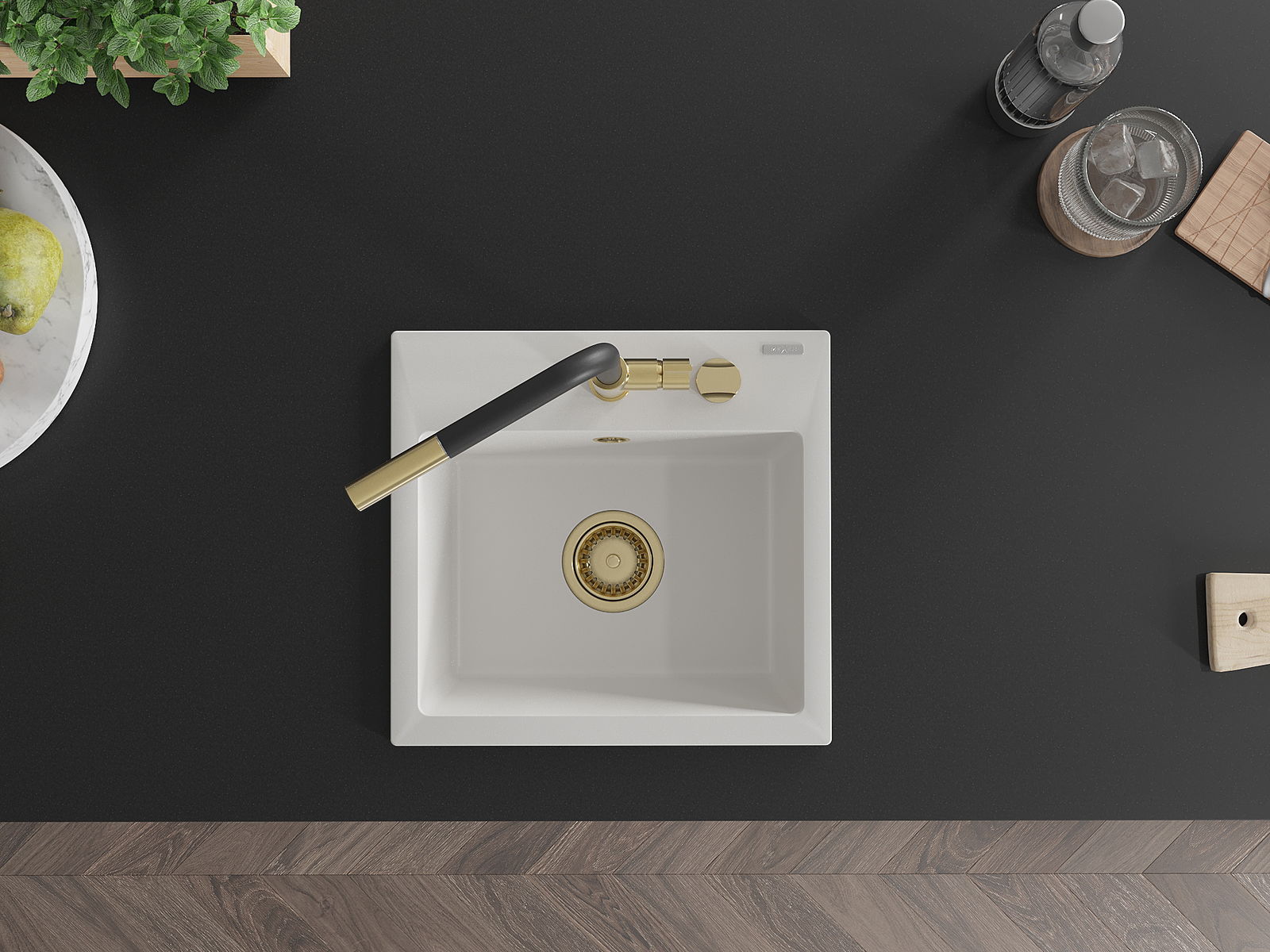 Suprafața chiuvetei este rezistentă la pete și decolorarea, datorită căreia este ușor de curățat și își păstrează culoarea mult timp. Estetică și practic completarea fiecărei bucătării.