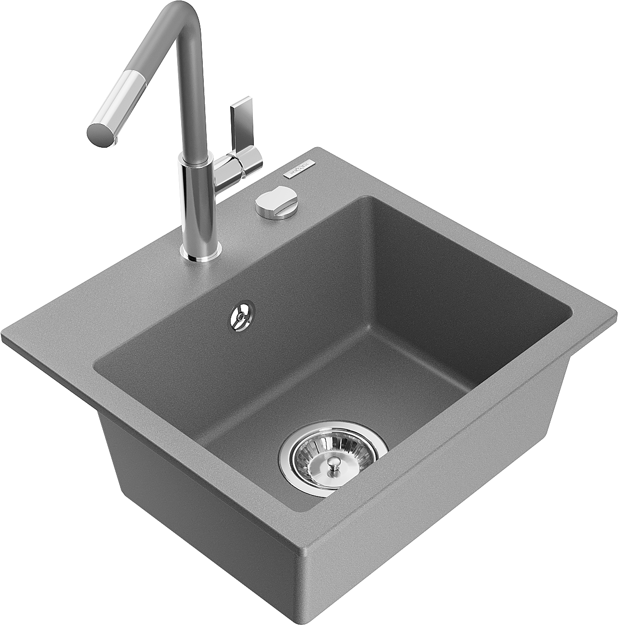 Mexen Milo chiuveta de bucătărie din granit cu 1 compartiment cu baterie de bucătărie Flora, gri - 6505-71-670401-06
