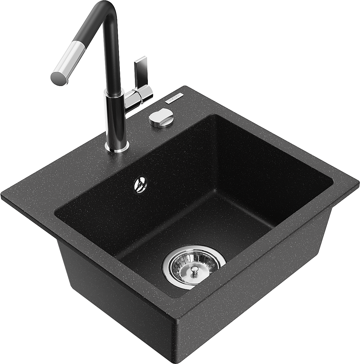 Mexen Milo chiuvetă de granit cu 1 compartiment cu baterie de bucătărie Flora, negru/argintiu metalic - 6505-73-670401-07