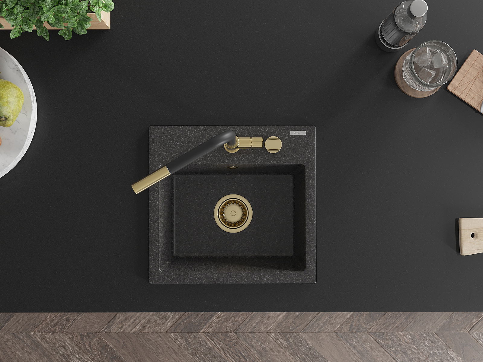 Chiuveta are o gaură prezentată cu un diametru de 35 mm pentru auto -burst. Poate fi folosit, printre altele Pentru montarea unui distribuitor de lichid care va elimina prezența sticlelor de plastic în bucătărie și îi va oferi un finisaj elegant.