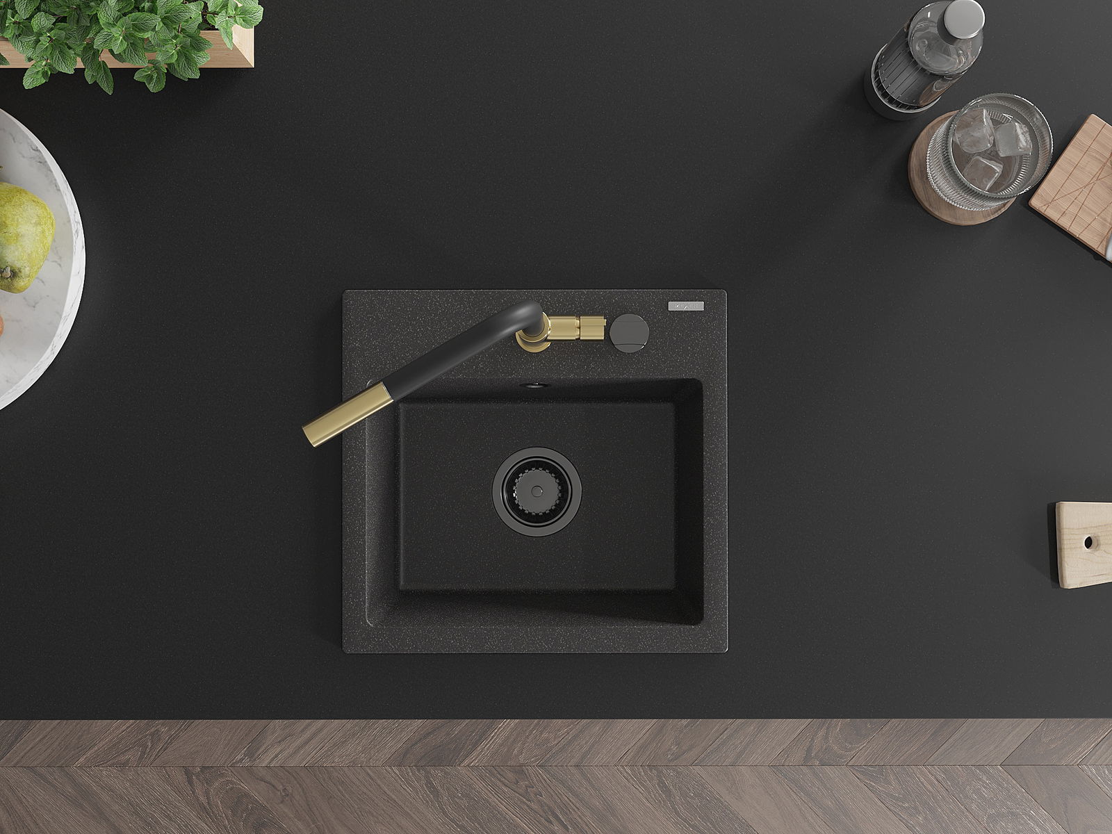 Mexen Milo chiuvetă granit 1-cameră cu baterie de bucătărie Flora, negru cu pete - 6505-76-670401-57-B