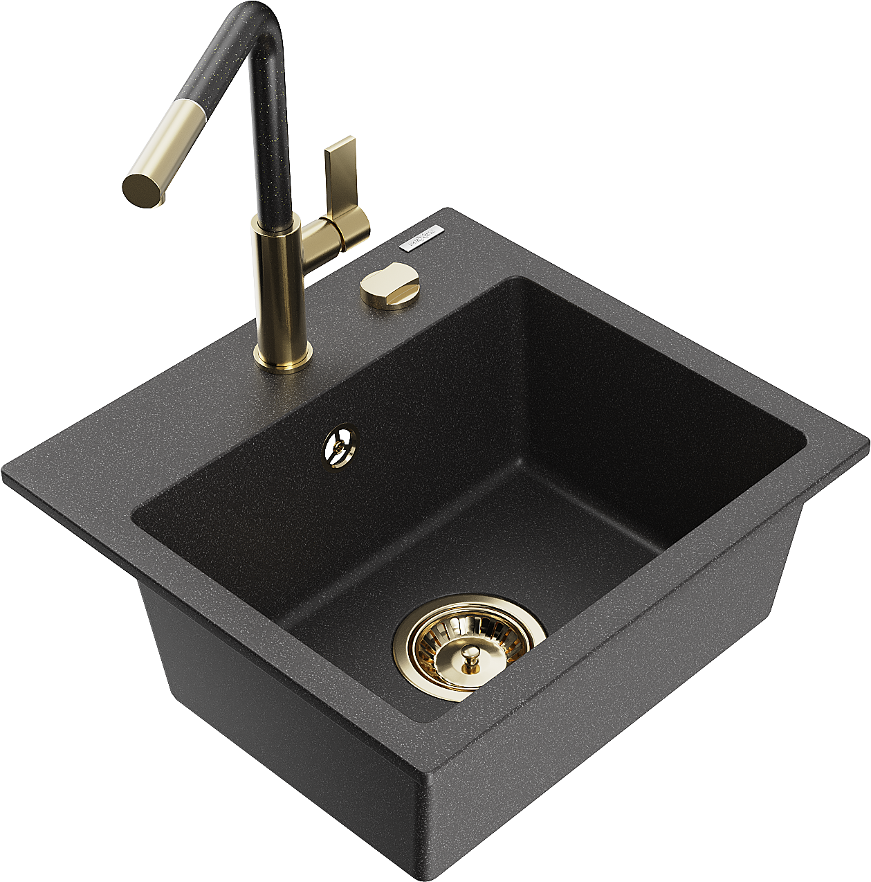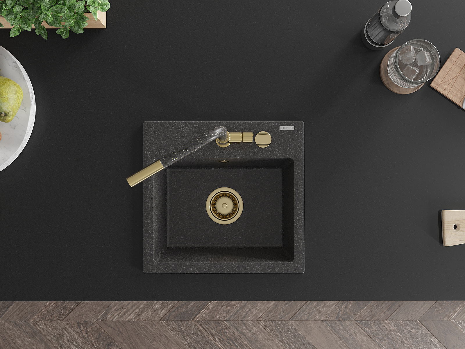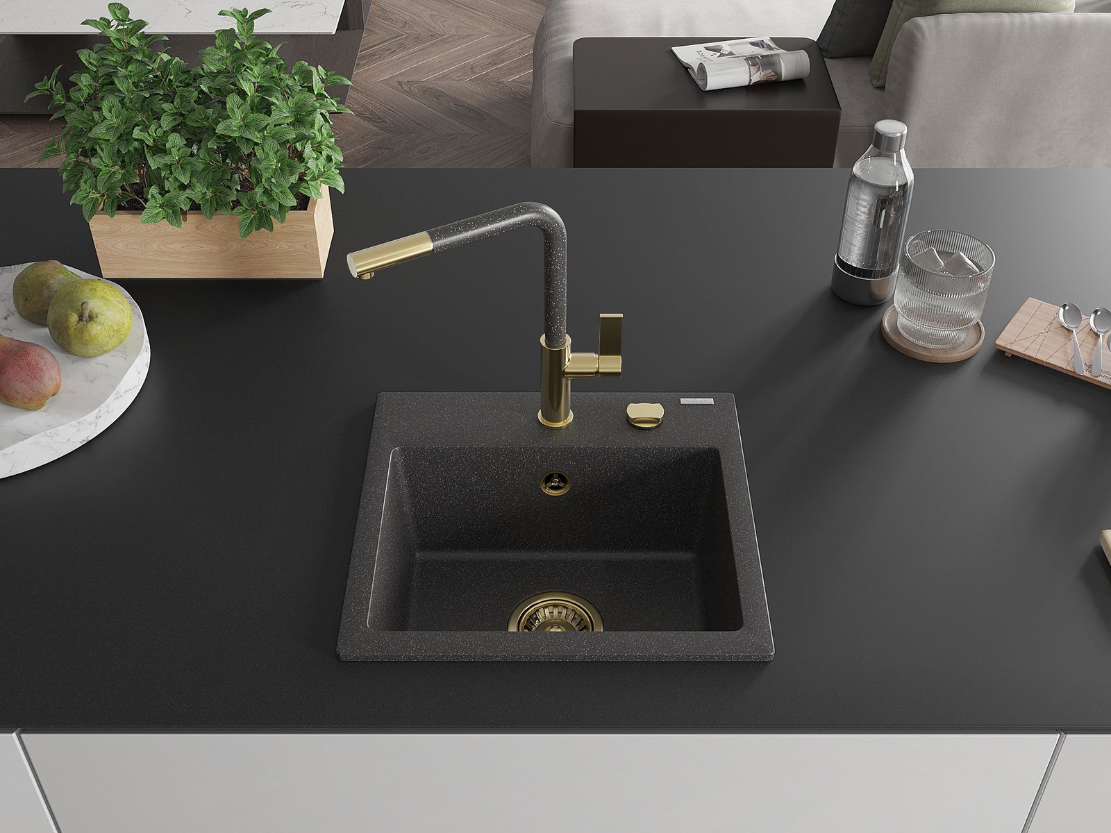 Mexen Milo chiuvetă granit 1-cameră cu baterie de bucătărie Flora, negru pătat - 6505-76-670401-75-G