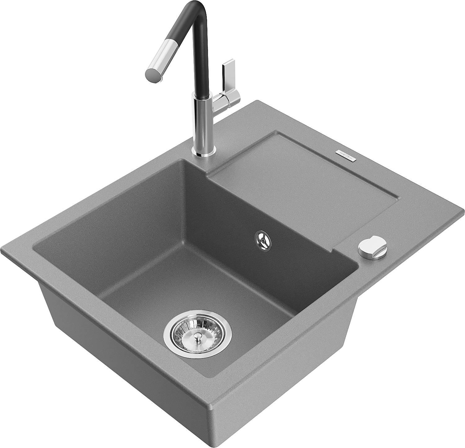 Mexen Enzo chiuvetă de bucătărie din granit cu 1 compartiment, cu scurgător și baterie de bucătărie Flora, gri - 6506-71-670401?