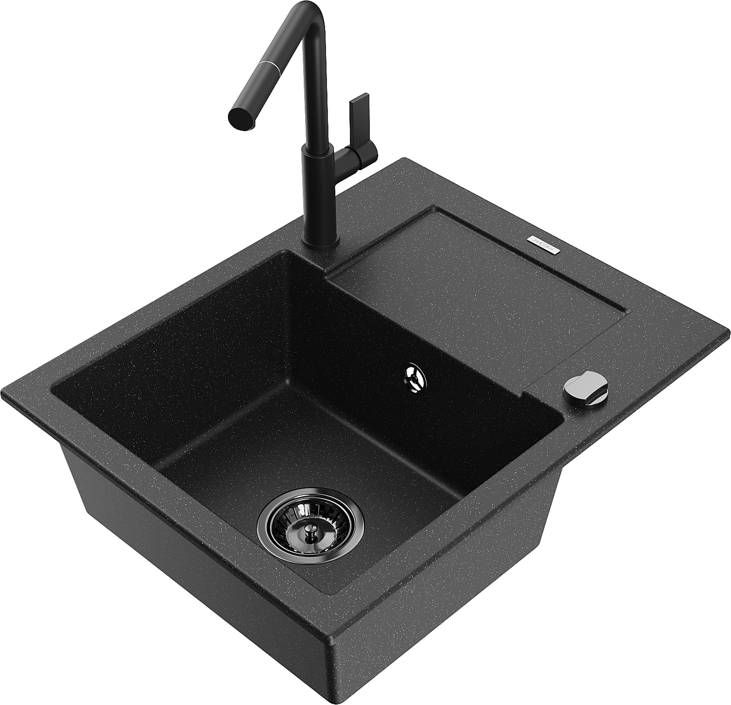 Mexen Enzo chiuvetă de granit cu 1 compartiment cu scurgător și baterie de bucătărie Flora, negru/metal argintiu - 6506-73-6704?