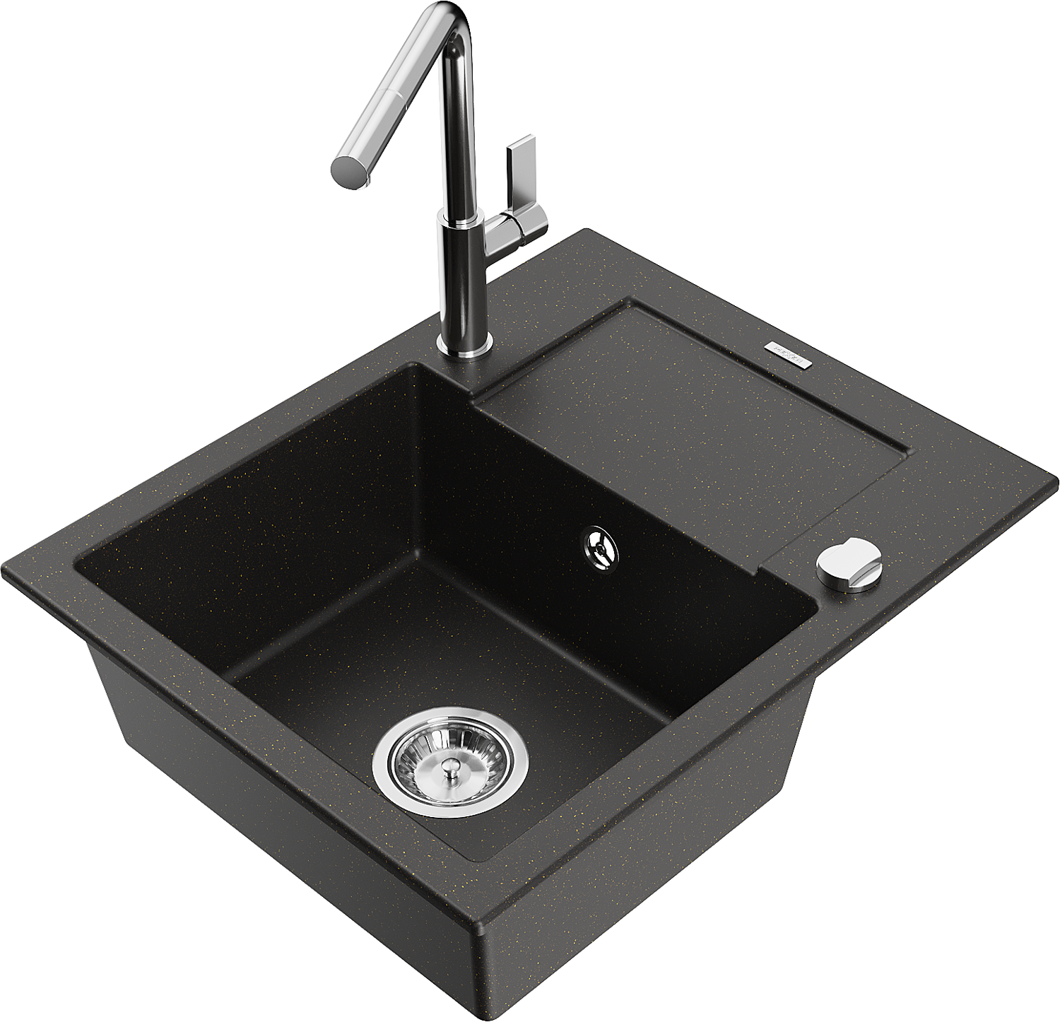 Mexen Enzo chiuvetă de granit cu 1 cuvă, cu scurgător și robinet de bucătărie Flora, negru/auriu metalic - 6506-75-670401-00