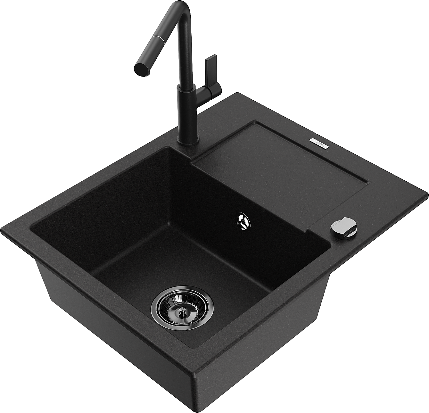 Mexen Enzo chiuvetă de bucătărie din granit cu 1 compartiment și scurgător și baterie Flora, negru - 6506-77-670401-70-B