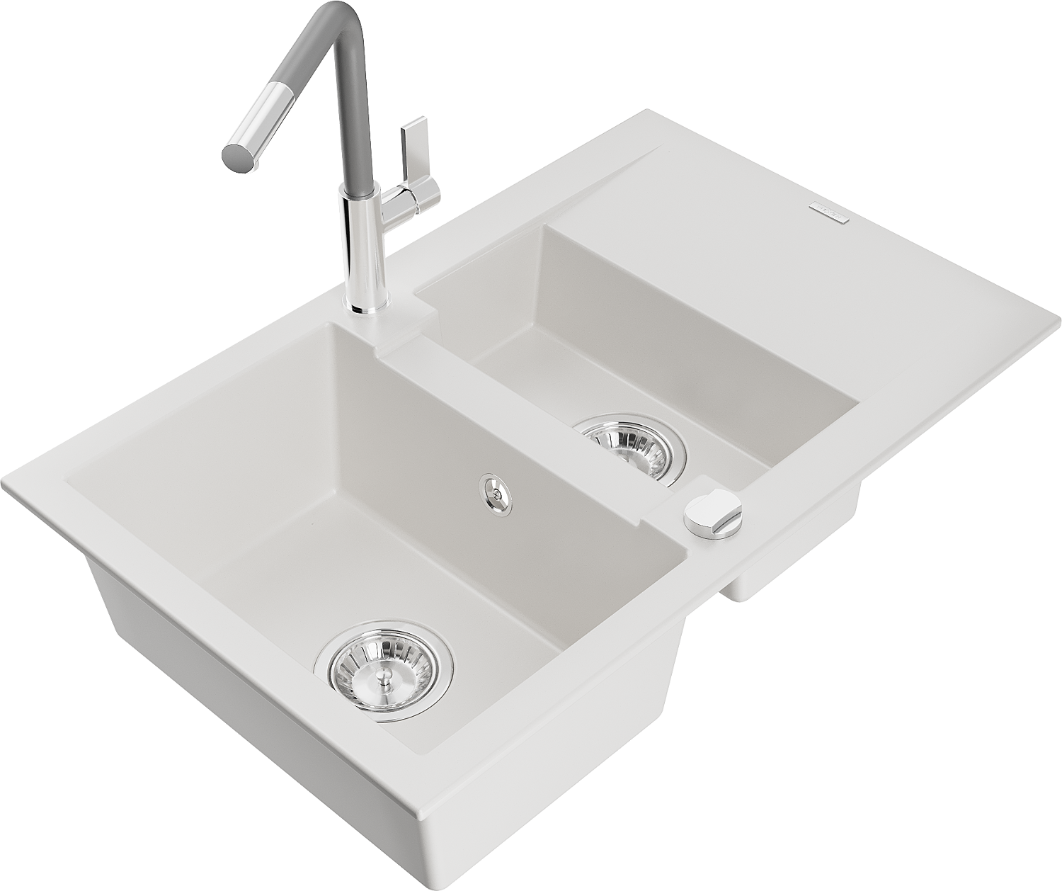 Suprafața chiuvetei este rezistentă la pete și decolorarea, datorită căreia este ușor de curățat și își păstrează culoarea mult timp. Estetică și practic completarea fiecărei bucătării.