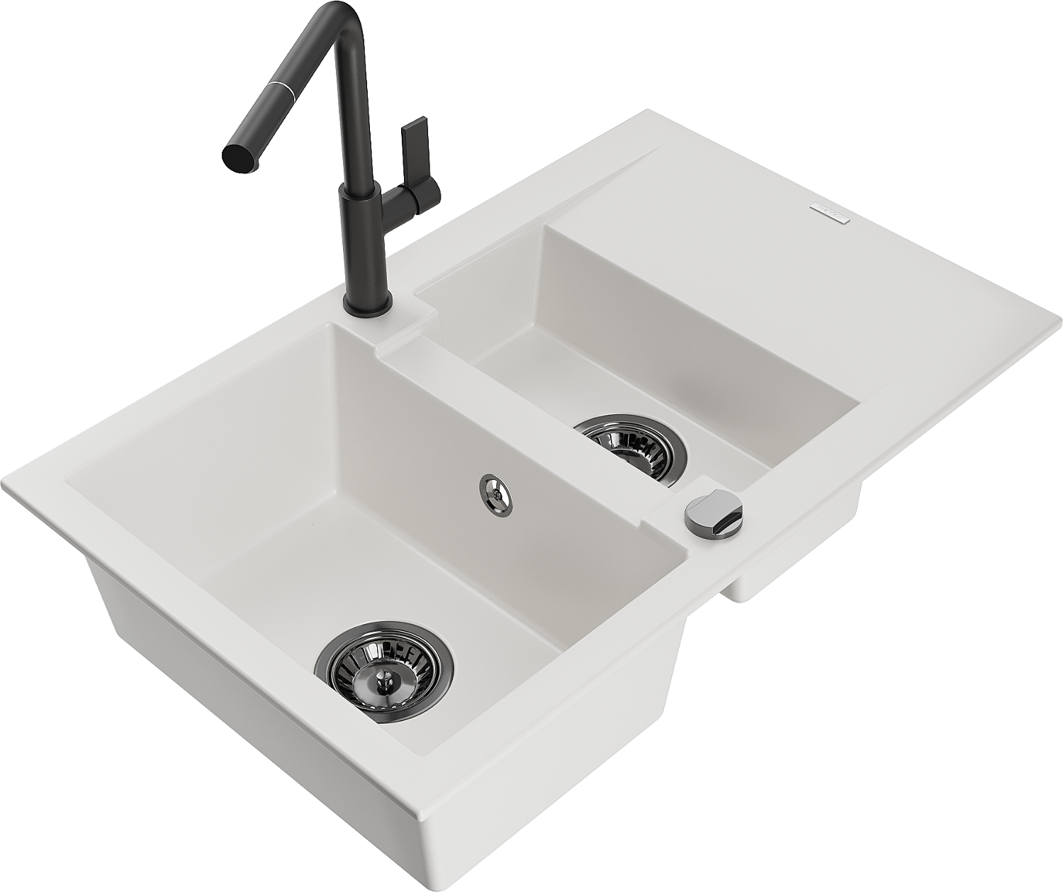 Mexen Gaspar chiuvetă de granit cu 1,5 camere cu scurgător și baterie de bucătărie Flora, alb - 6507-20-670401-70-B