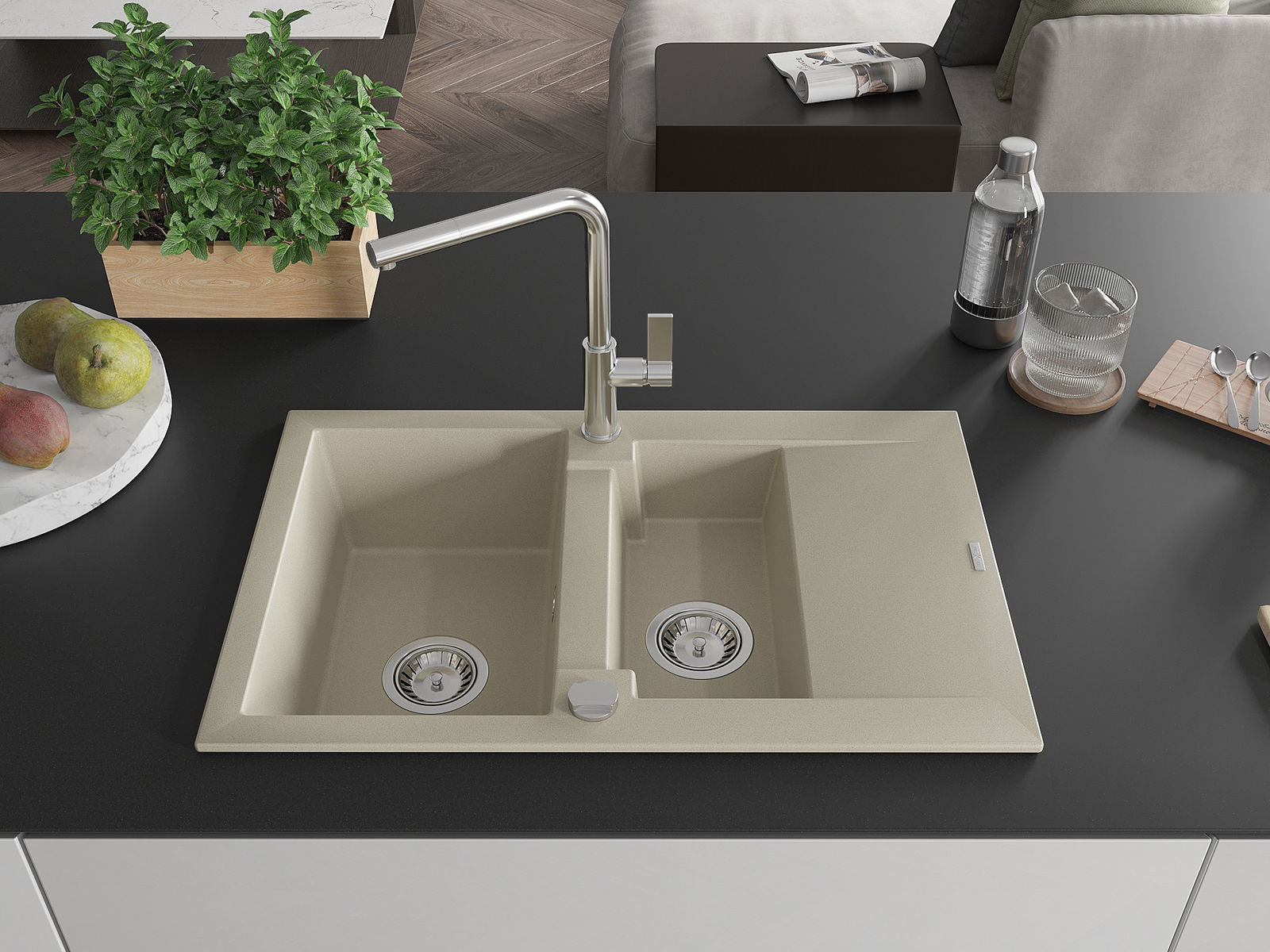Suprafața chiuvetei este rezistentă la pete și decolorarea, datorită căreia este ușor de curățat și își păstrează culoarea mult timp. Estetică și practic completarea fiecărei bucătării.