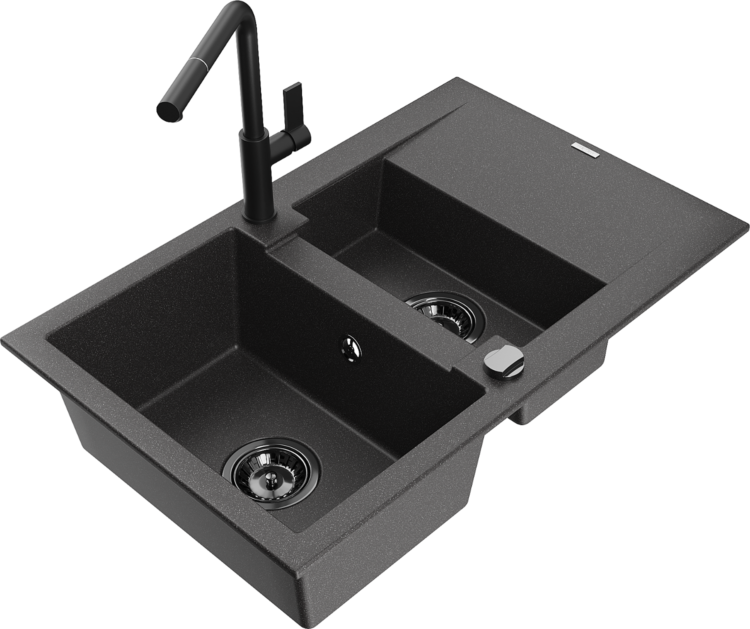 Mexen Gaspar chiuvetă din granit cu 1,5 compartimente cu picurător și baterie de bucătărie Flora, negru punctat