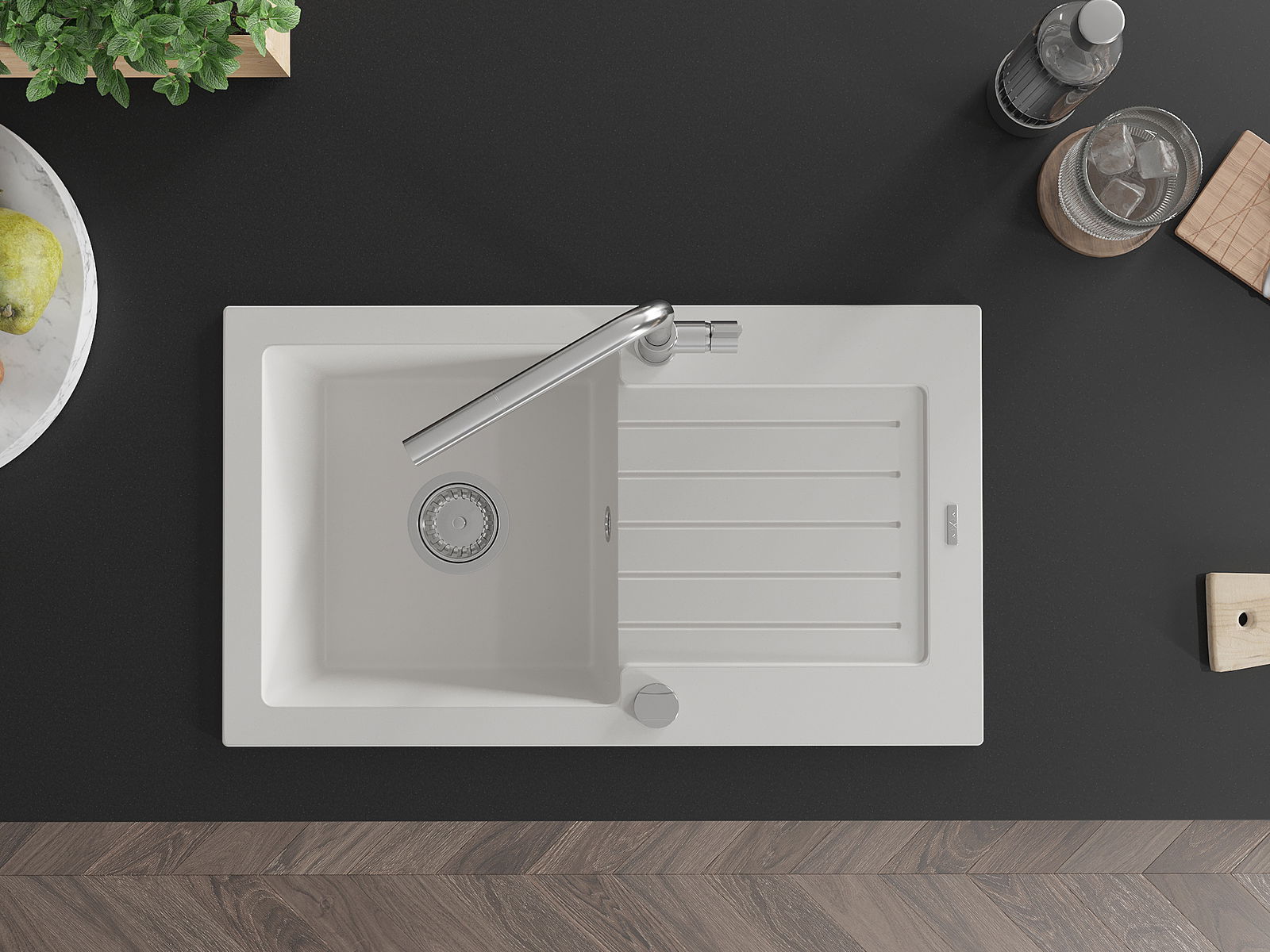 Suprafața chiuvetei este rezistentă la pete și decolorarea, datorită căreia este ușor de curățat și își păstrează culoarea mult timp. Estetică și practic completarea fiecărei bucătării.