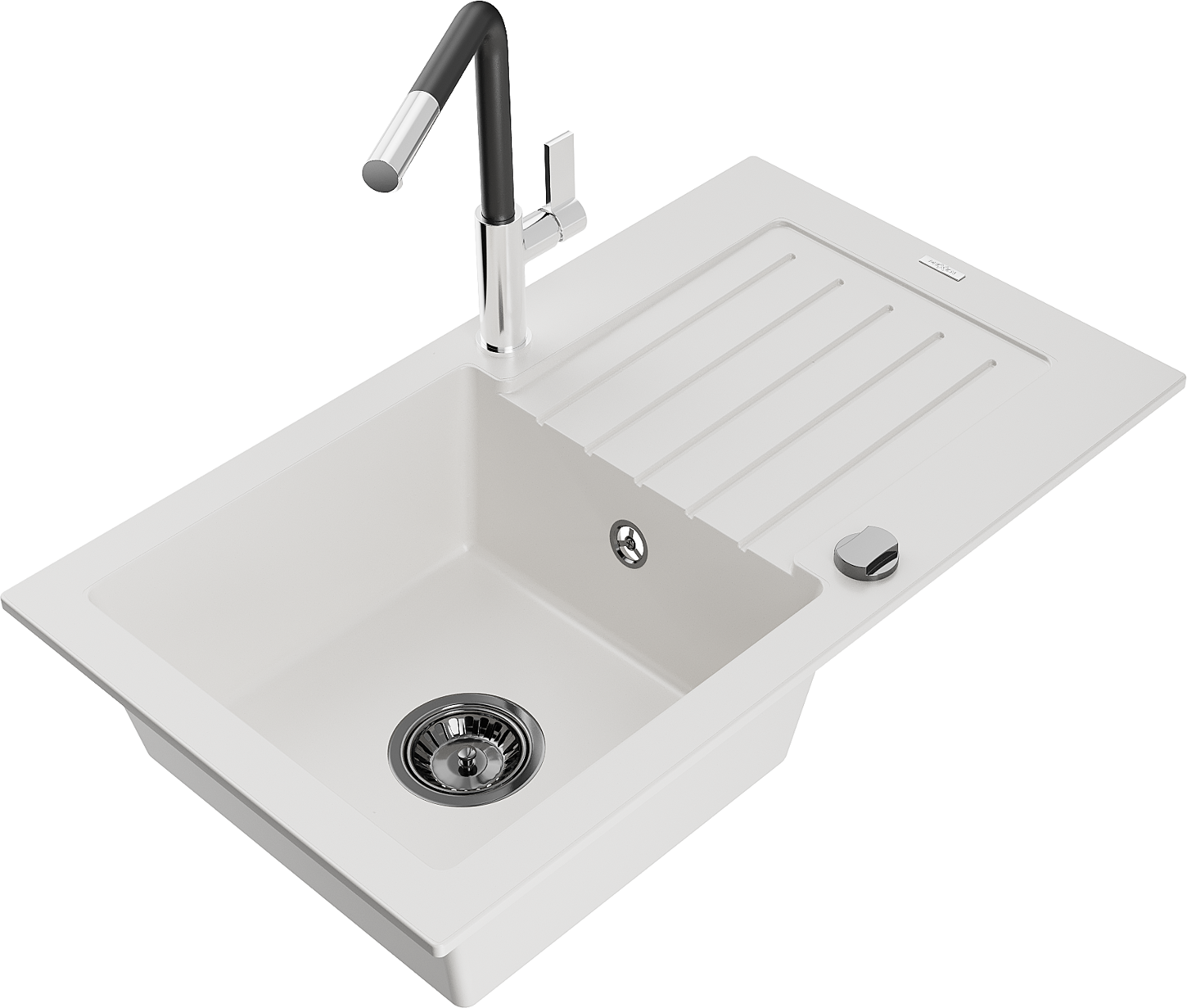 Mexen Pablo chiuvetă de bucătărie din granit cu 1 compartiment cu scurgător și baterie Flora, alb - 6510-20-670401-07-B