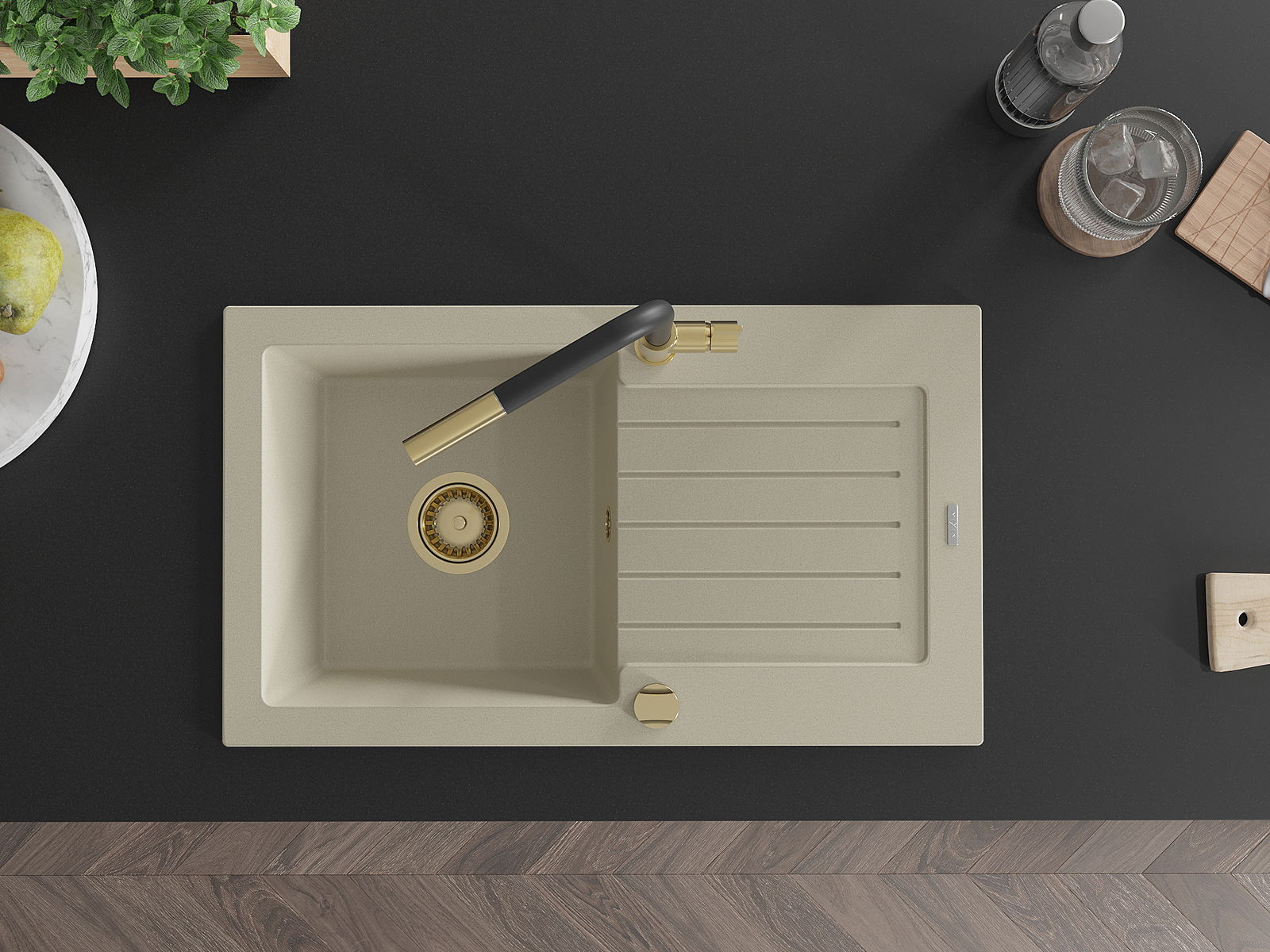 Suprafața chiuvetei este rezistentă la pete și decolorarea, datorită căreia este ușor de curățat și își păstrează culoarea mult timp. Estetică și practic completarea fiecărei bucătării.