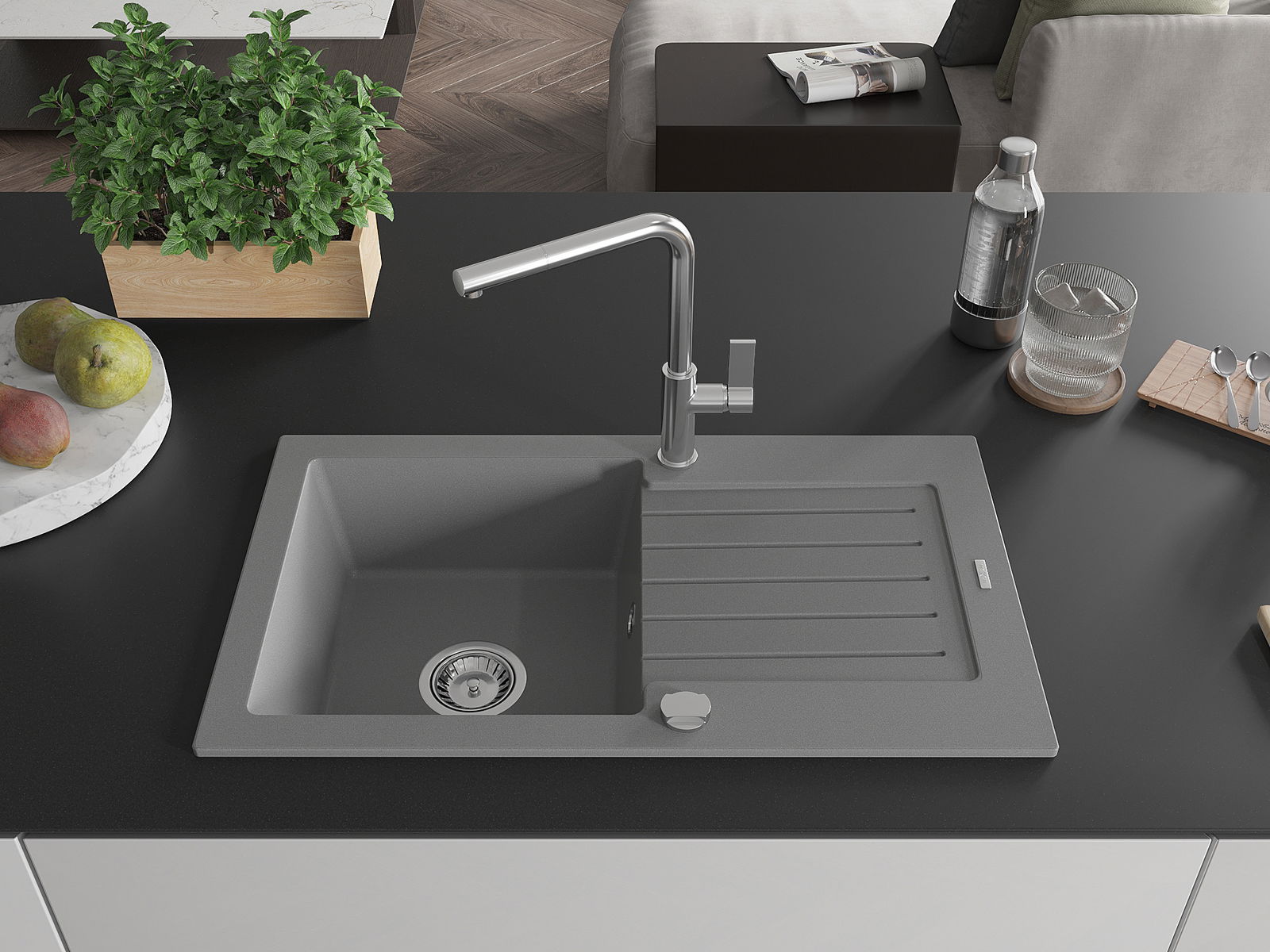 Suprafața chiuvetei este rezistentă la pete și decolorarea, datorită căreia este ușor de curățat și își păstrează culoarea mult timp. Estetică și practic completarea fiecărei bucătării.