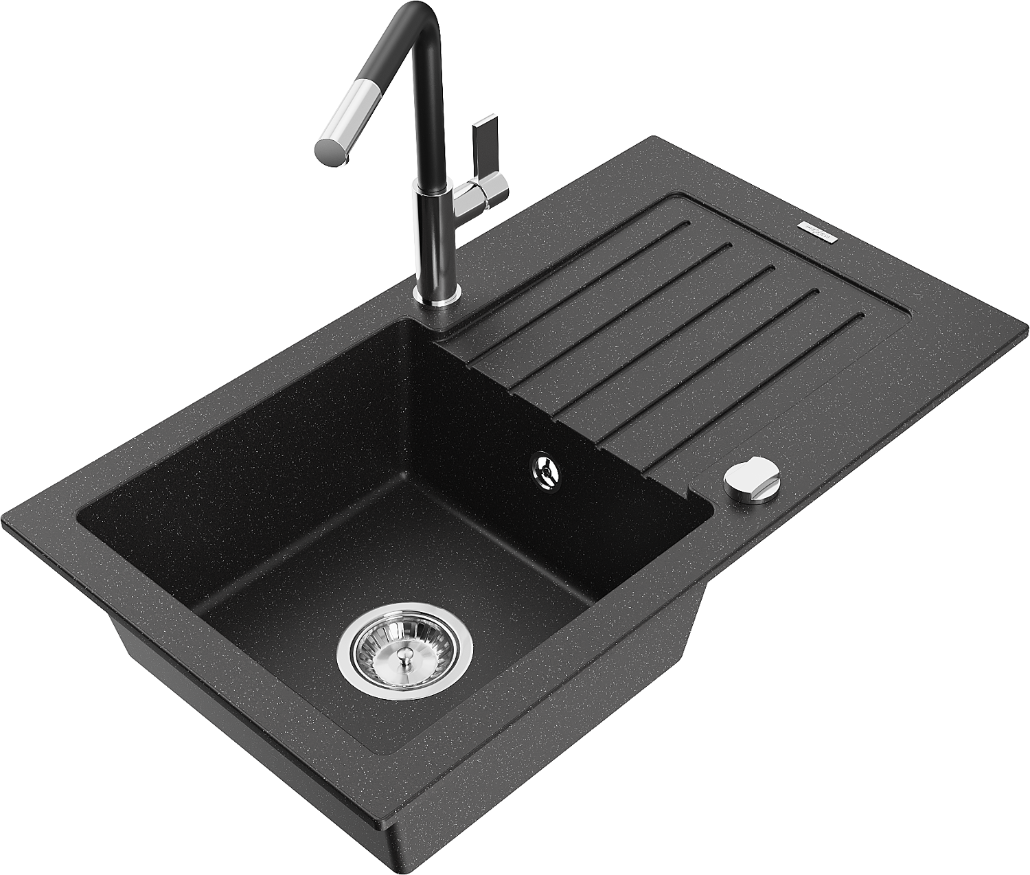 Mexen Pablo chiuvetă de granit cu 1 cameră cu scurgător și baterie de bucătărie Flora, negru/argintiu metalic - 6510-73-670401-?