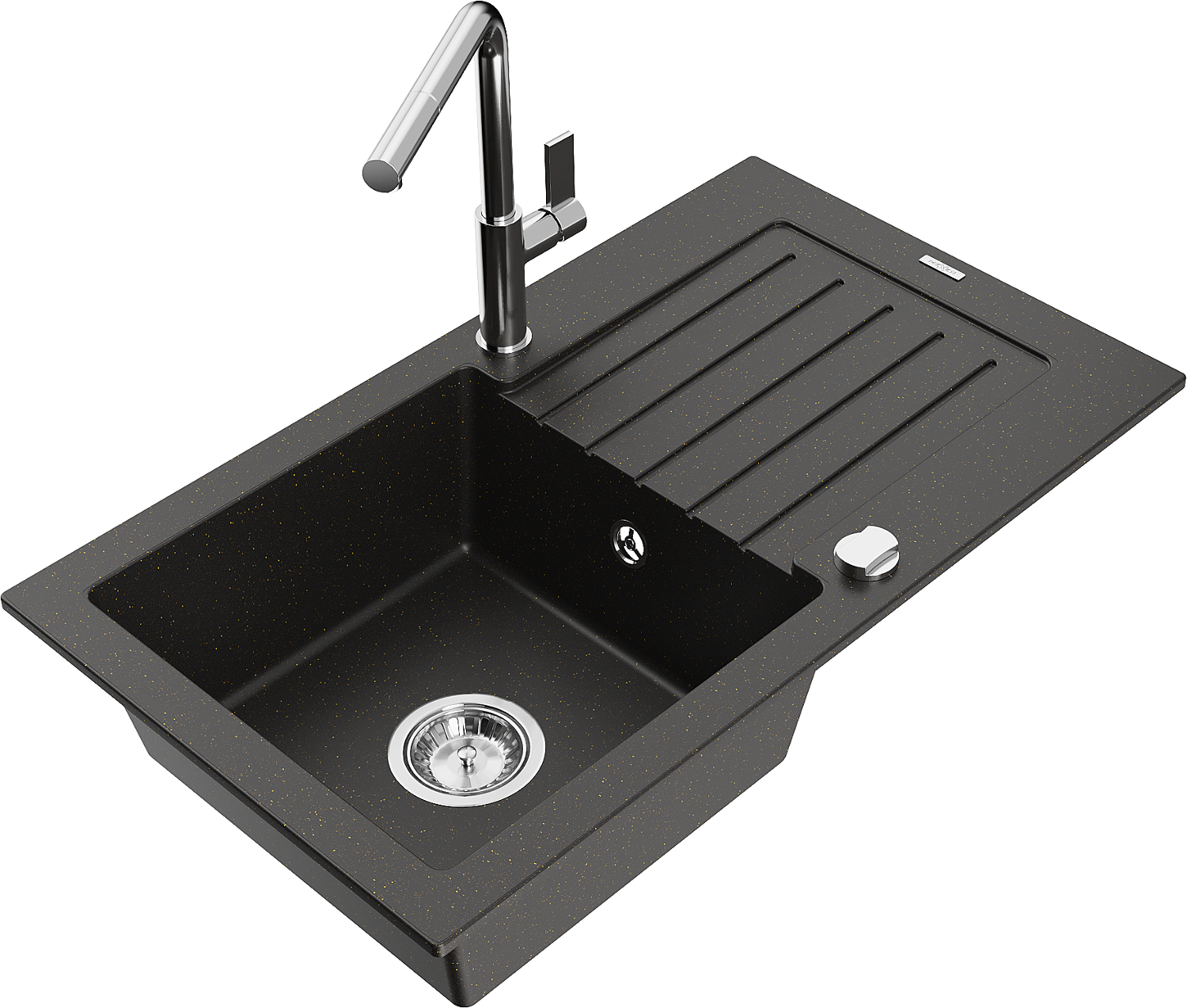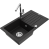 Mexen Pablo chiuvetă de granit cu 1 compartiment cu scurgător și baterie de bucătărie Flora, negru/metalic auriu