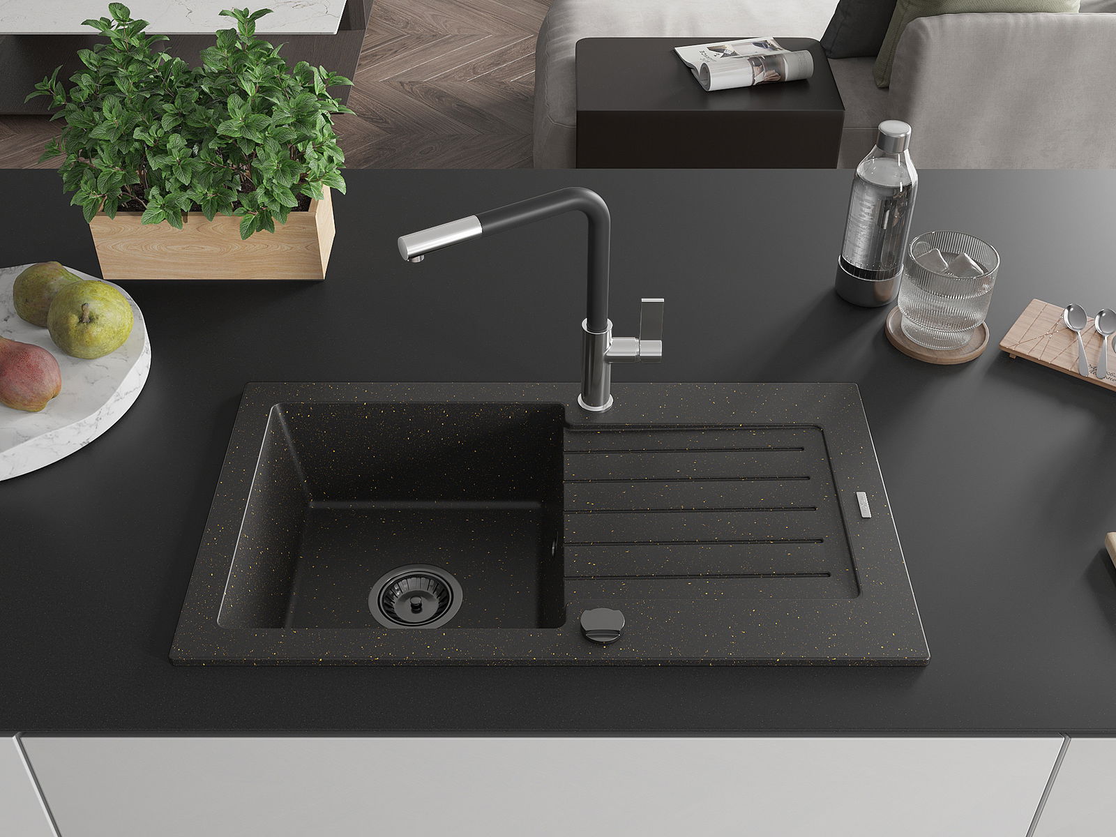 Chiuveta a fost realizată din granit de înaltă calitate. Reprezintă un element elegant și, mai ales, practic pentru completarea oricărei bucătării, indiferent de stilul acesteia. Calitatea și durabilitatea ridicată a granitului asigură utilizarea de lungă durată.