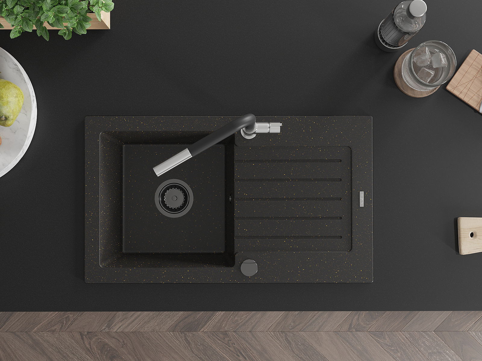 Suprafața chiuvetei este rezistentă la pete și decolorare, ceea ce o face ușor de întreținut și își păstrează culoarea pentru o perioadă lungă de utilizare. Un complet estetic și practic pentru orice bucătărie.