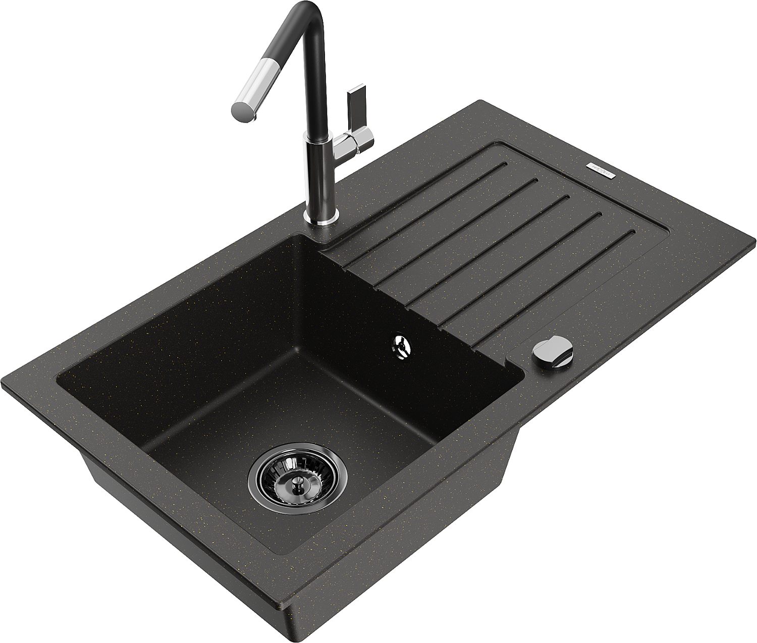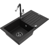 Mexen Pablo chiuvetă de granit cu 1 compartiment cu scurgător și baterie de bucătărie Flora, negru/auriu metalizat
