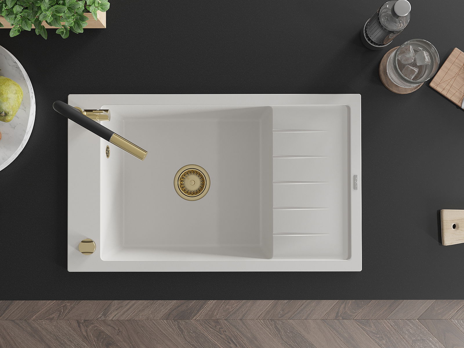 Suprafața chiuvetei este rezistentă la pete și decolorarea, datorită căreia este ușor de curățat și își păstrează culoarea mult timp. Estetică și practic completarea fiecărei bucătării.