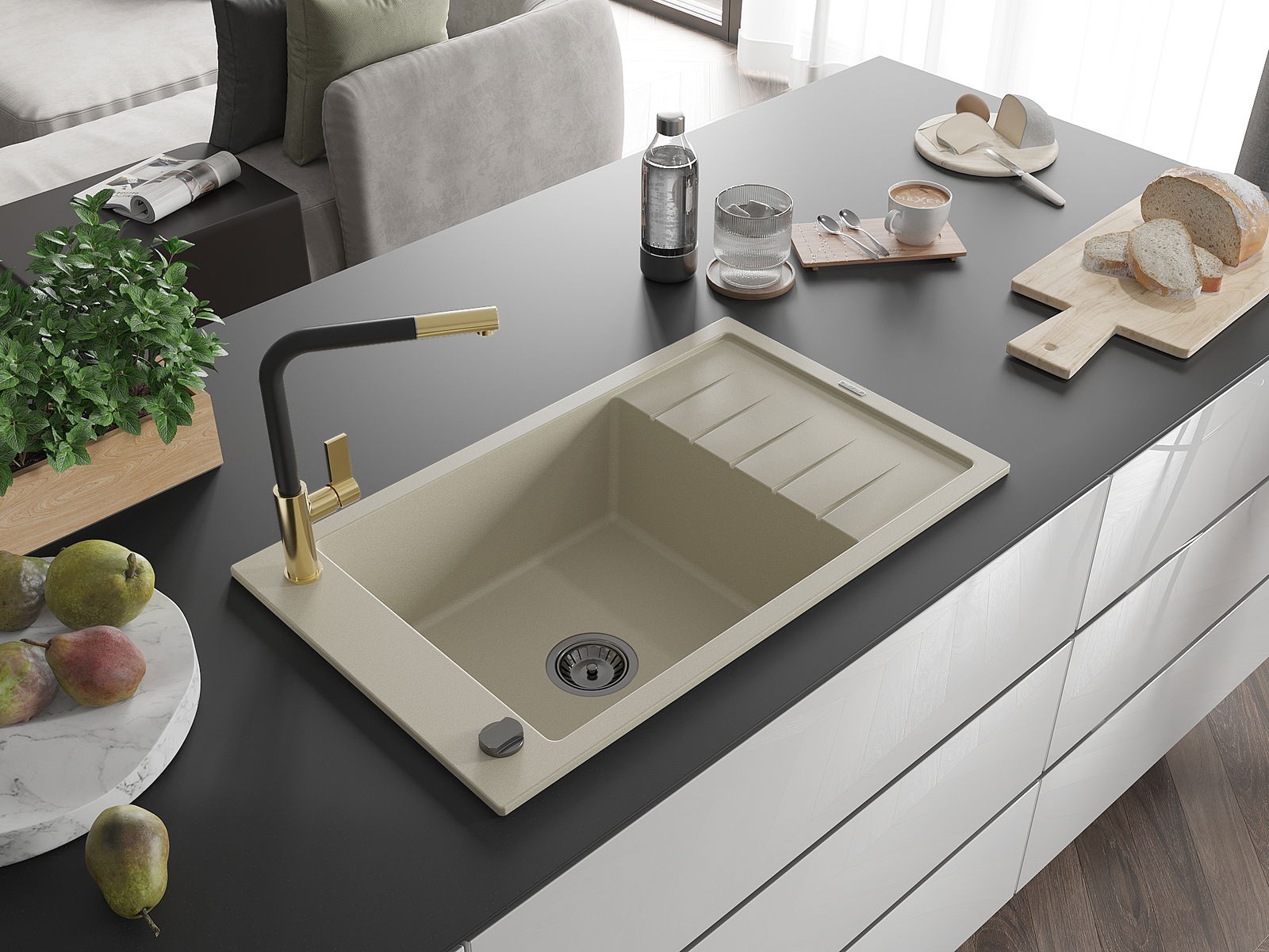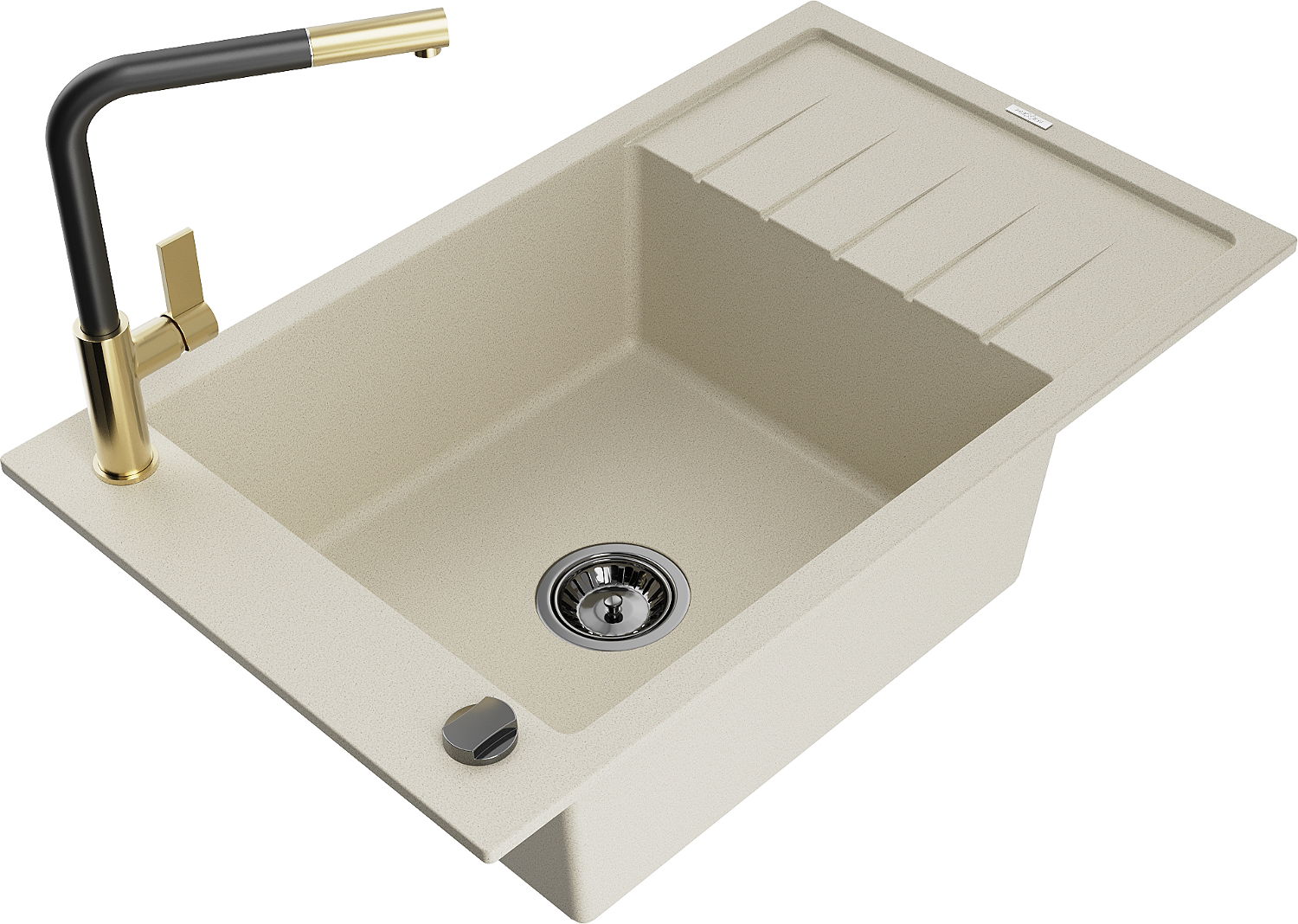 Mexen Elias chiuvetă de granit cu 1 compartiment și scurgător și baterie de bucătărie Flora, bej - 6511-69-670401-57-B