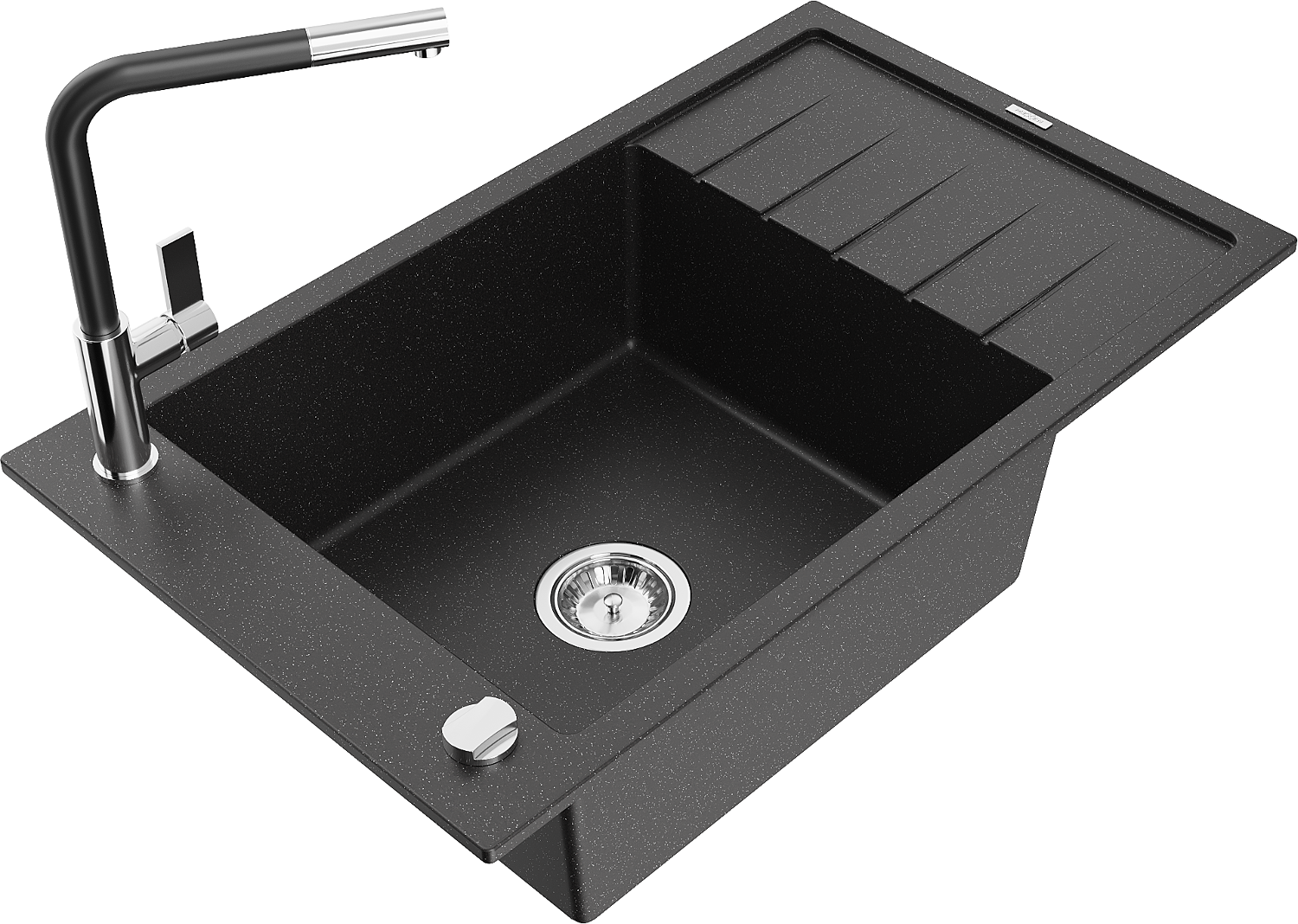 Mexen Elias chiuvetă de granit cu 1 cuvă cu scurgător și baterie de bucătărie Flora, negru/argintiu metalic