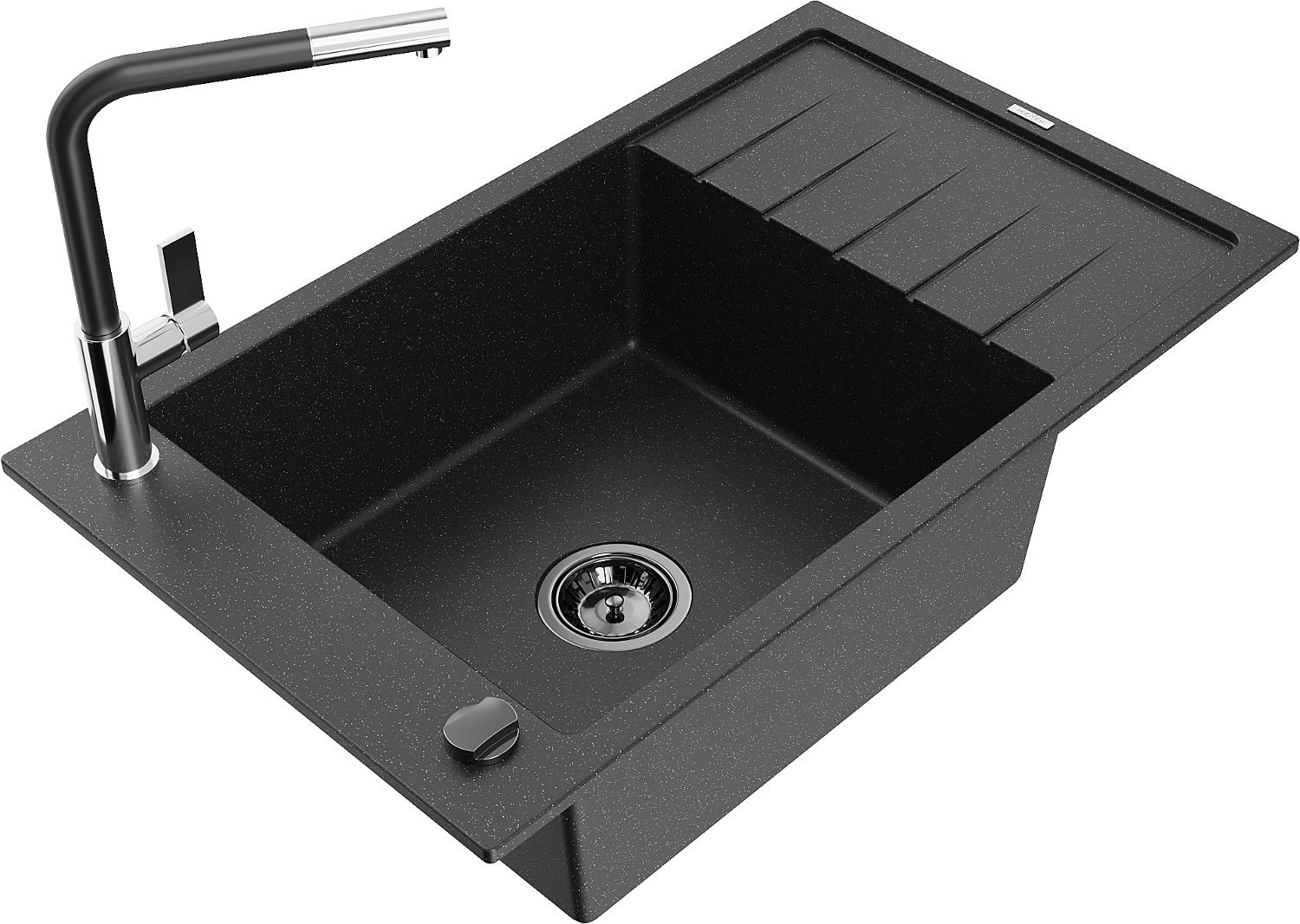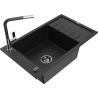 Mexen Elias chiuvetă de granit cu o singură cuvă cu scurgător și baterie de bucătărie Flora, negru/argintiu metalic