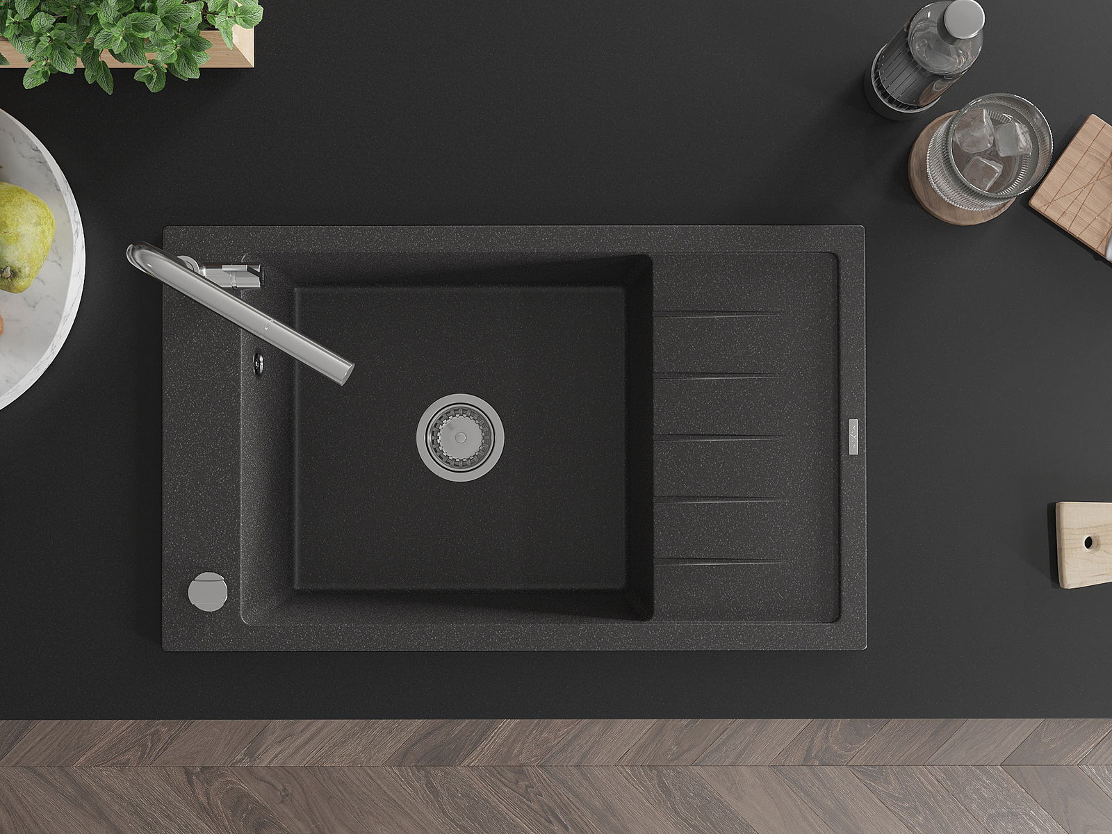 Suprafața chiuvetei este rezistentă la pete și decolorarea, datorită căreia este ușor de curățat și își păstrează culoarea mult timp. Estetică și practic completarea fiecărei bucătării.