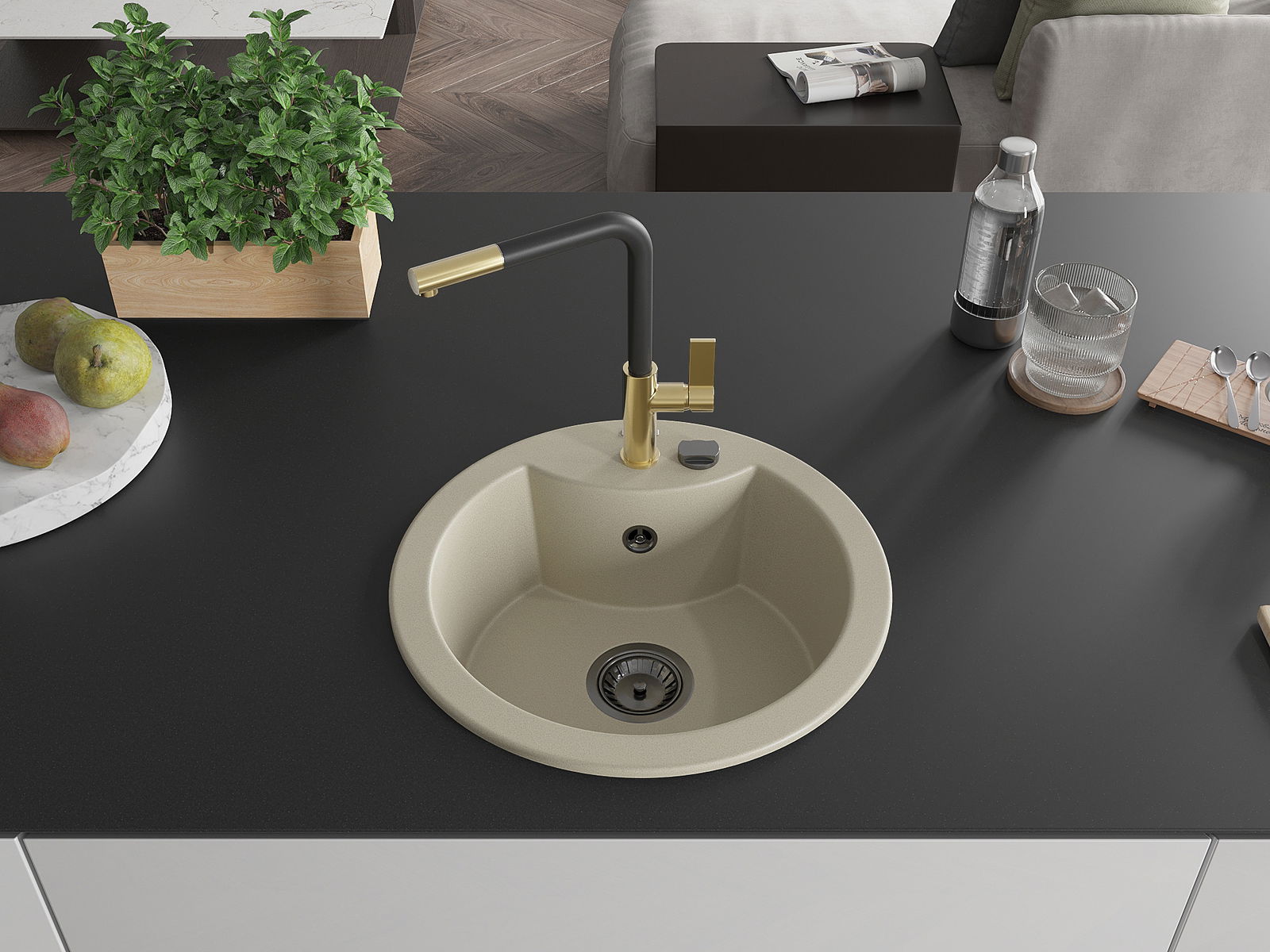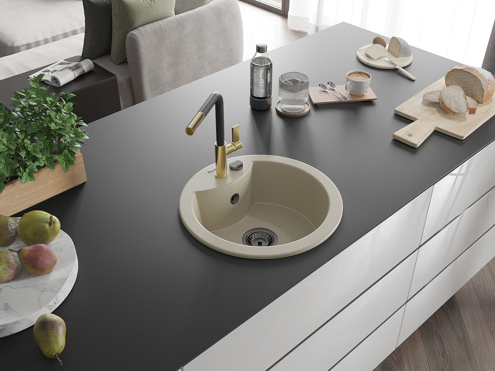 Suprafața chiuvetei este rezistentă la pete și decolorarea, datorită căreia este ușor de curățat și își păstrează culoarea mult timp. Estetică și practic completarea fiecărei bucătării.