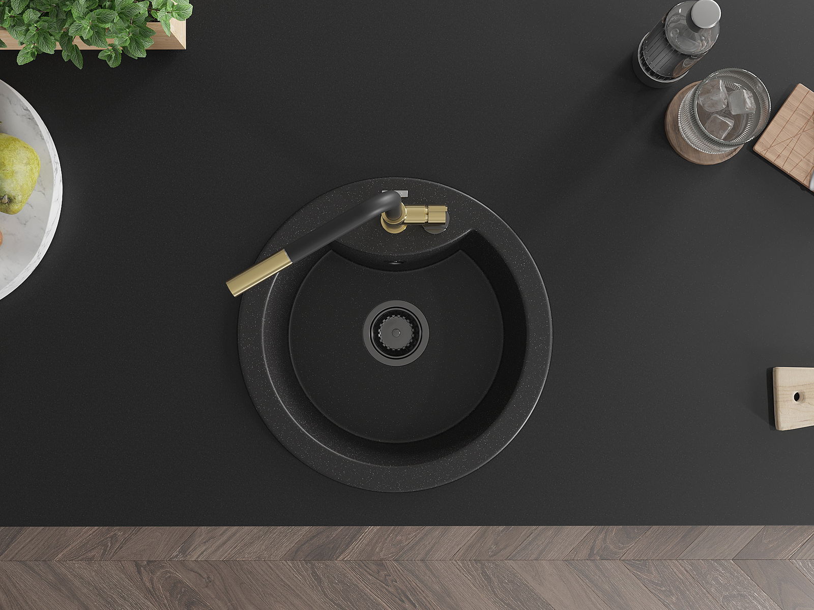 Chiuveta are o gaură prezentată cu un diametru de 35 mm pentru auto -burst. Poate fi folosit, printre altele Pentru montarea unui distribuitor de lichid care va elimina prezența sticlelor de plastic în bucătărie și îi va oferi un finisaj elegant.