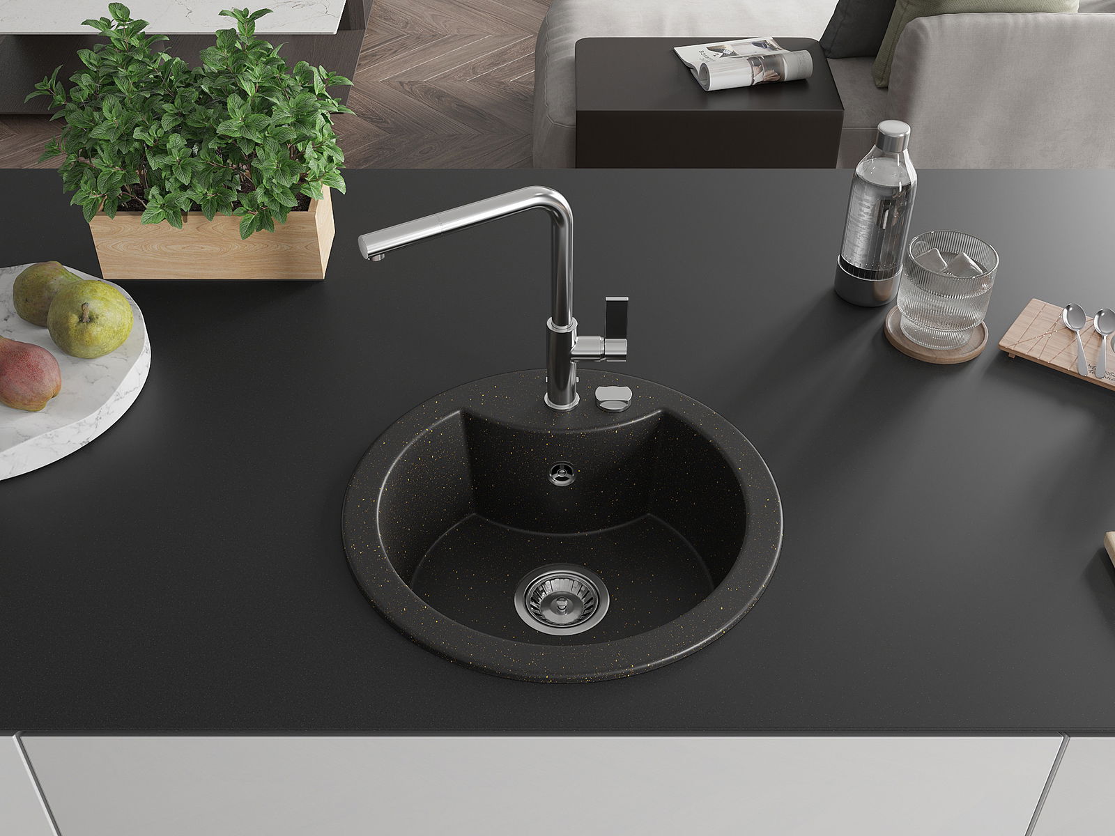 Chiuveta este confecționată din granit de înaltă calitate. Este un complement elegant și, mai ales, practic pentru fiecare bucătărie, indiferent de stilul său. Durabilitatea de înaltă calitate și granit asigură mulți ani de utilizare.