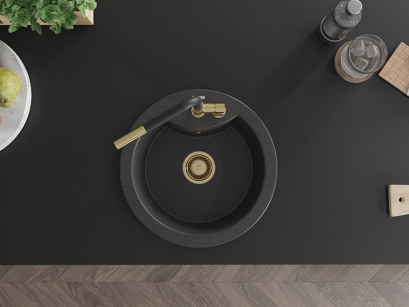 Chiuveta are o gaură prezentată cu un diametru de 35 mm pentru auto -burst. Poate fi folosit, printre altele Pentru montarea unui distribuitor de lichid care va elimina prezența sticlelor de plastic în bucătărie și îi va oferi un finisaj elegant.