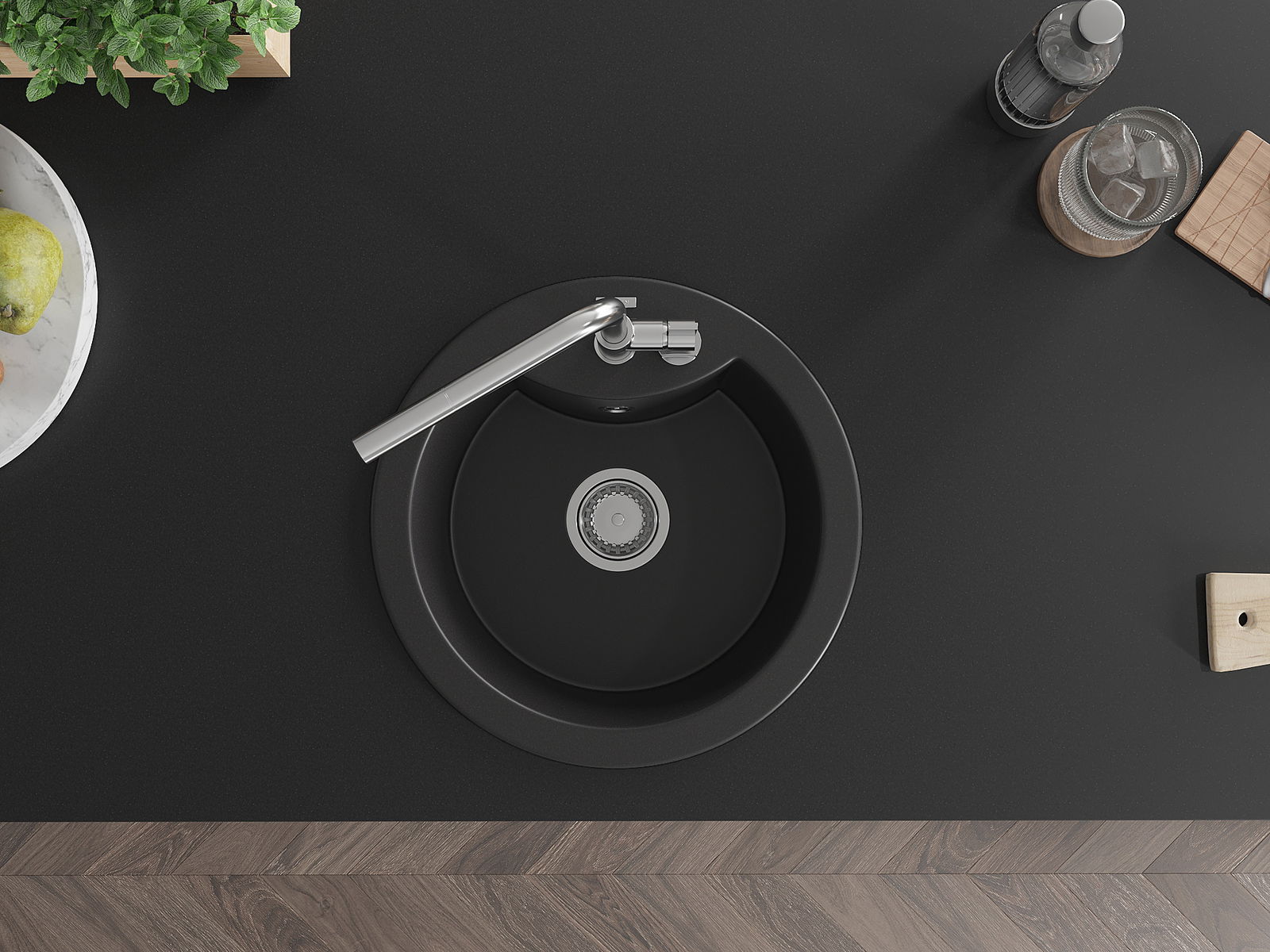 Chiuveta are o gaură prezentată cu un diametru de 35 mm pentru auto -burst. Poate fi folosit, printre altele Pentru montarea unui distribuitor de lichid care va elimina prezența sticlelor de plastic în bucătărie și îi va oferi un finisaj elegant.