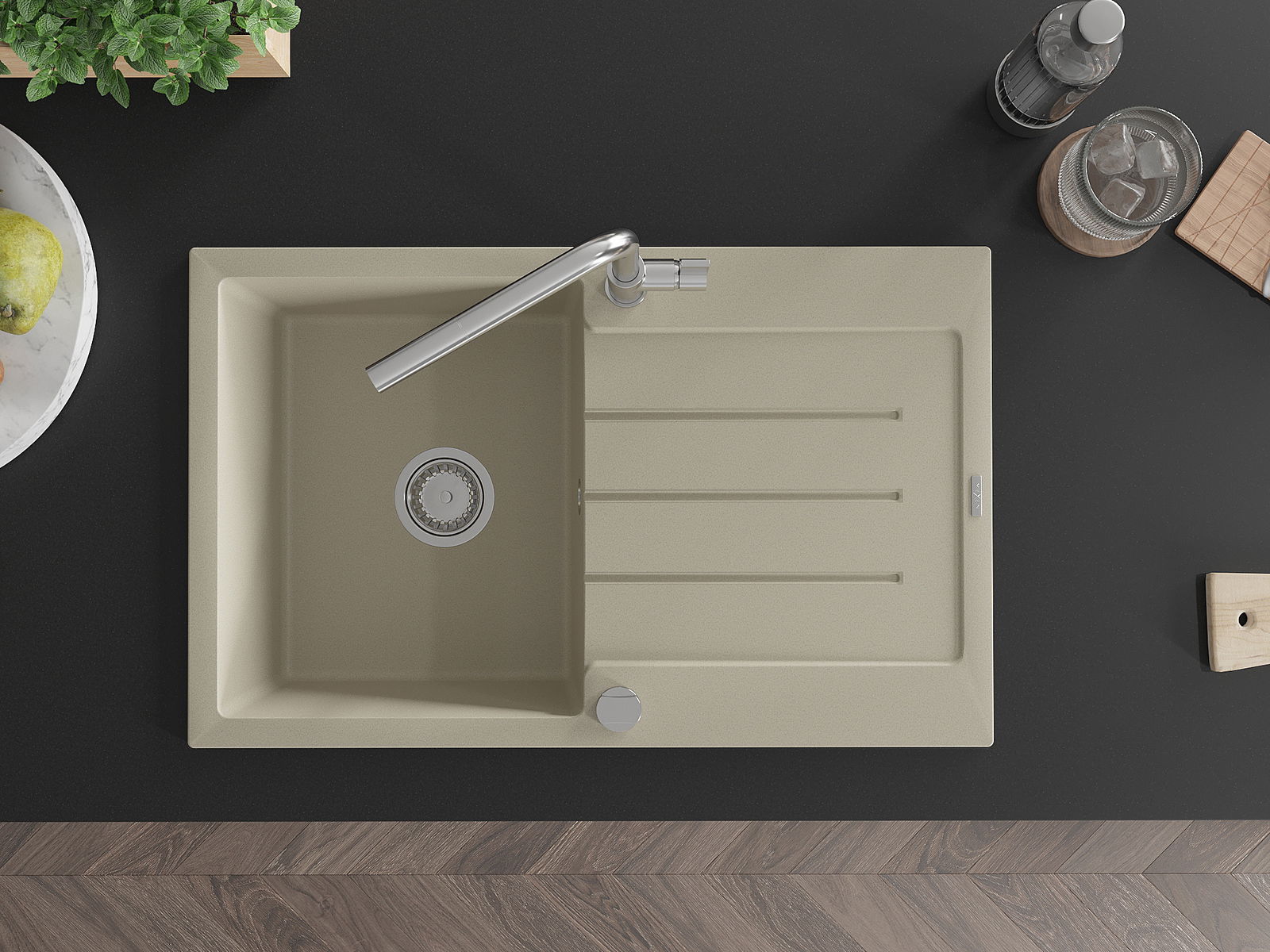 Suprafața chiuvetei este rezistentă la pete și decolorarea, datorită căreia este ușor de curățat și își păstrează culoarea mult timp. Estetică și practic completarea fiecărei bucătării.