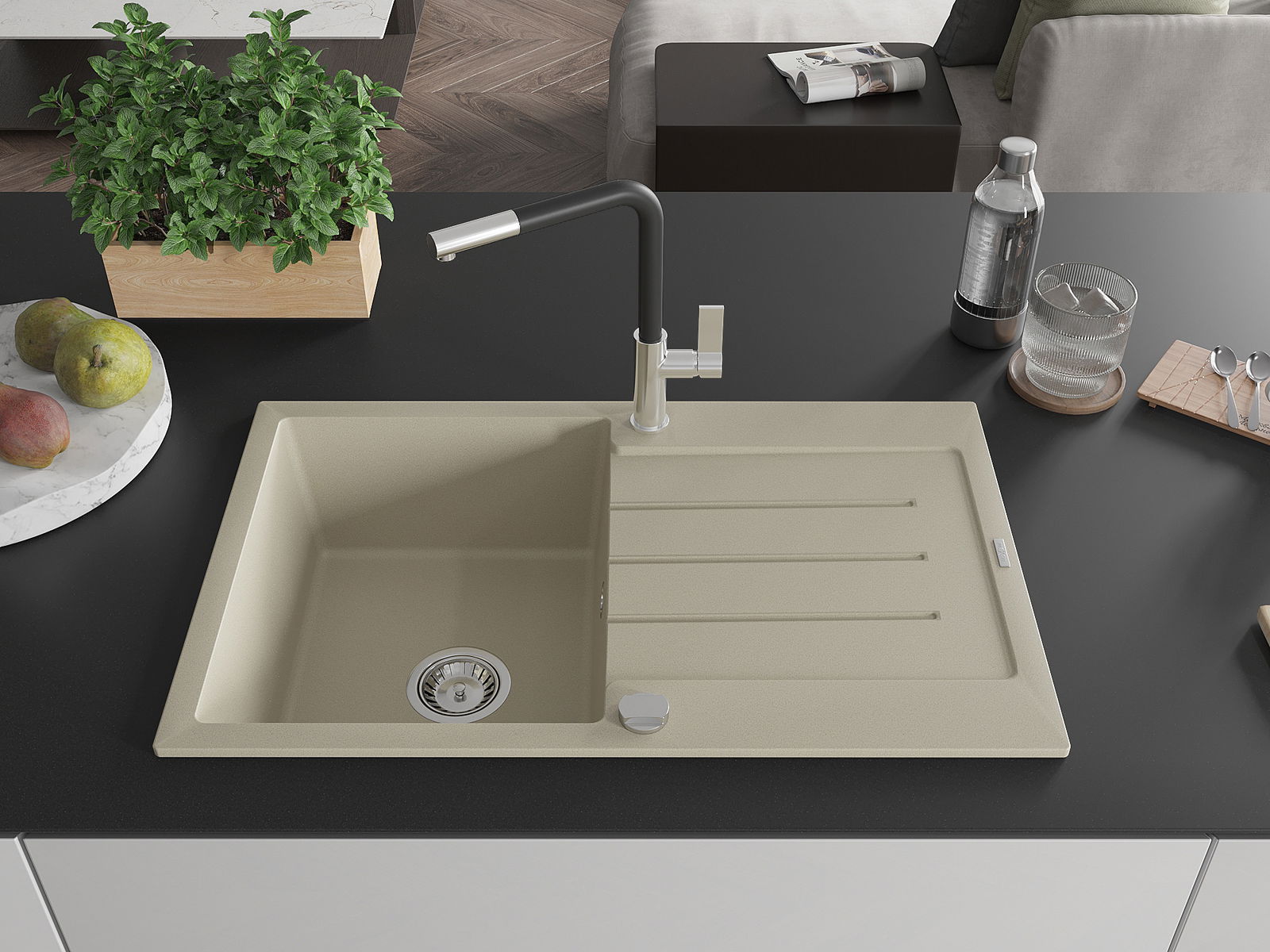 Chiuveta a fost realizată din granit de înaltă calitate. Reprezintă un complement elegant și, mai presus de toate, practic pentru orice bucătărie, indiferent de stilul acesteia. Calitatea înaltă și durabilitatea granitului asigură o utilizare de lungă durată.