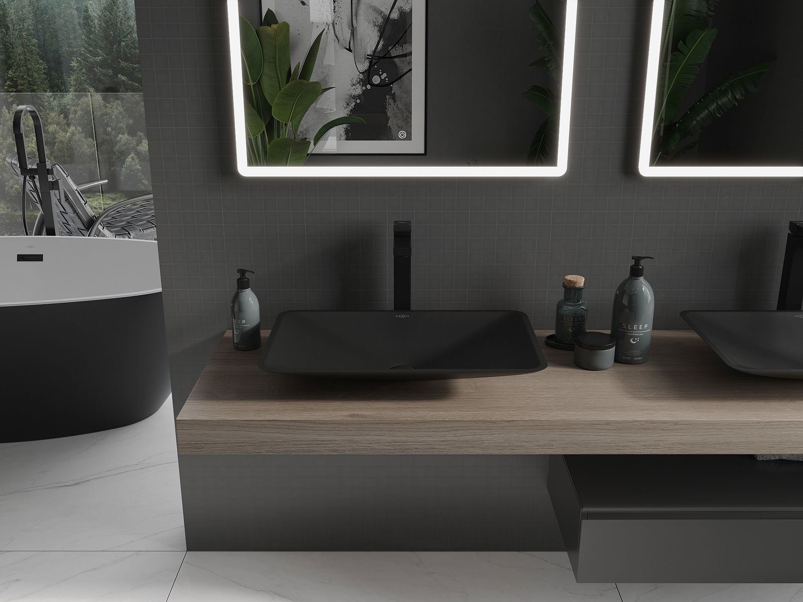 Suprafața mată a ceramicii subliniază perfect natura culorii produsului, oferindu -i un finisaj unic și expresiv. Structura subtilă a ceramicii mate introduce eleganță în baie, creând un spațiu estetic.