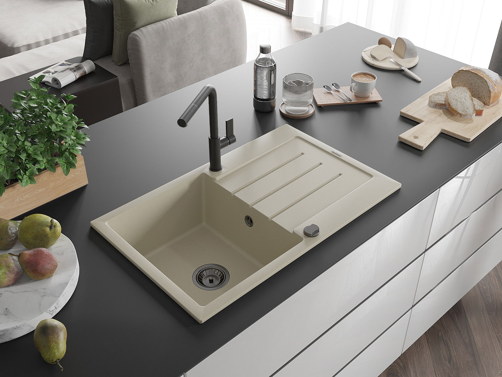 Chiuveta a fost realizată din granit de înaltă calitate. Reprezintă un complement elegant și, mai presus de toate, practic pentru orice bucătărie, indiferent de stilul acesteia. Calitatea înaltă și durabilitatea granitului asigură o utilizare de lungă durată.