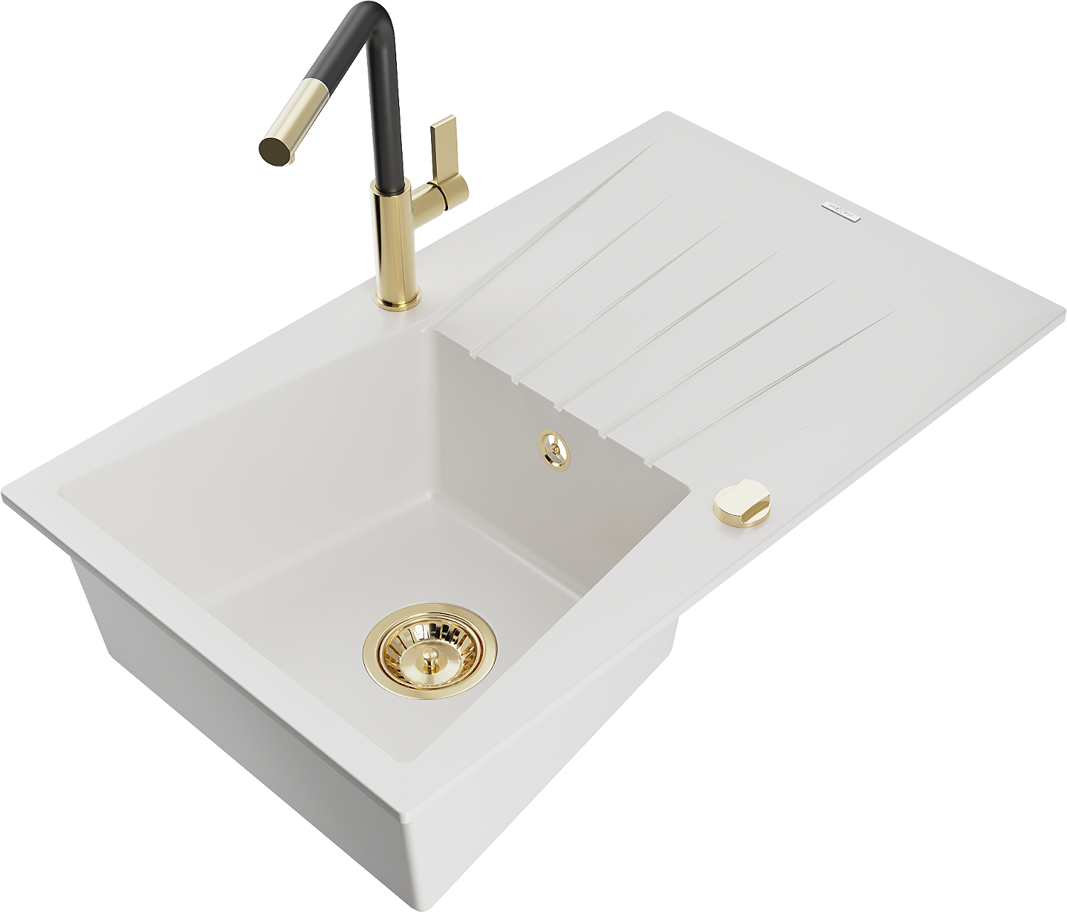 Suprafața chiuvetei este rezistentă la pete și decolorarea, datorită căreia este ușor de curățat și își păstrează culoarea mult timp. Estetică și practic completarea fiecărei bucătării.