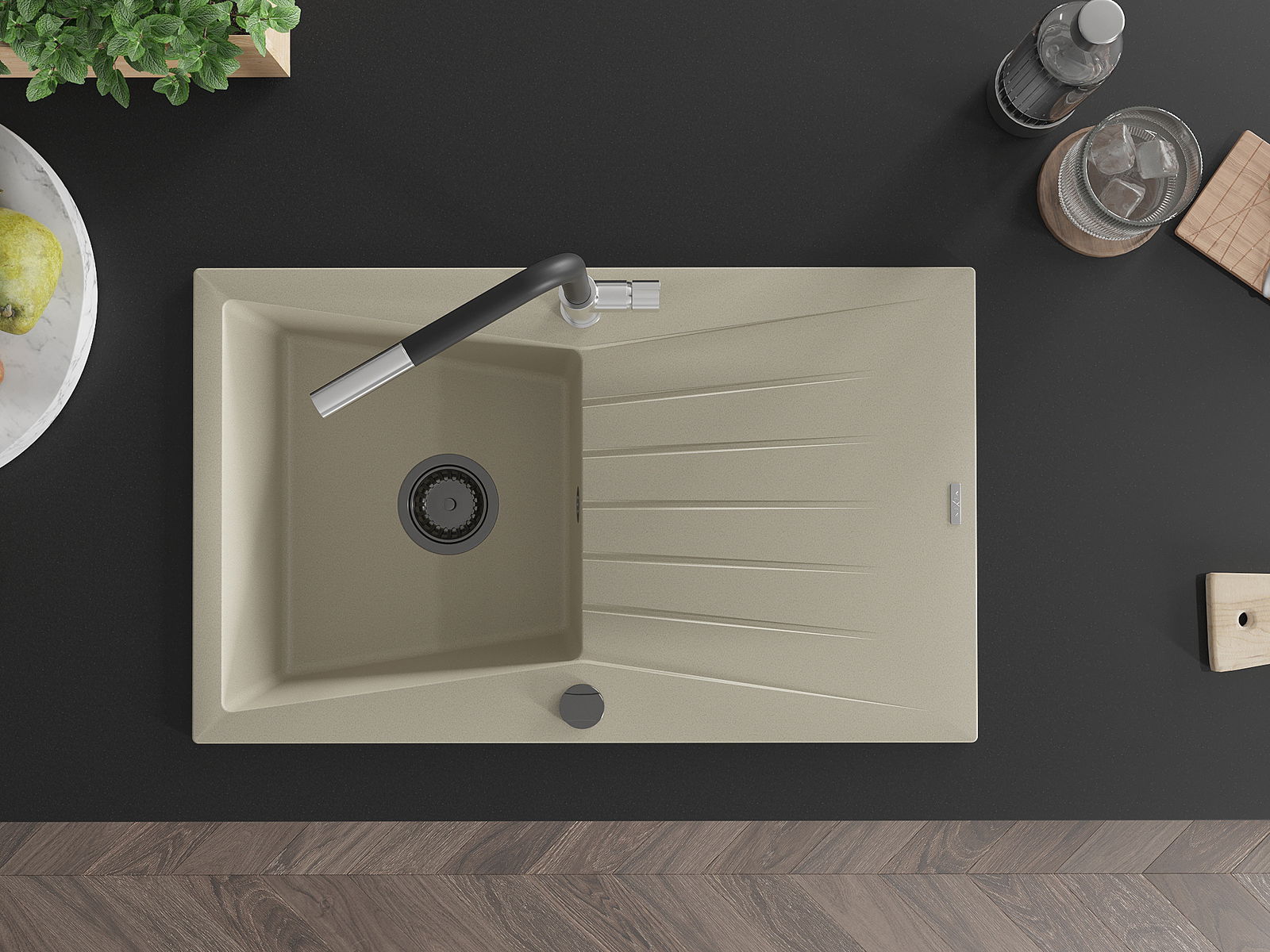 Suprafața chiuvetei este rezistentă la pete și decolorarea, datorită căreia este ușor de curățat și își păstrează culoarea mult timp. Estetică și practic completarea fiecărei bucătării.