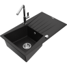 Mexen Cesar chiuvetă din granit cu 1 compartiment cu scurgător și baterie de bucătărie Flora, negru/auriu metalic