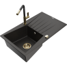 Mexen Cesar chiuvetă de granit cu o cuvă și scurgător și baterie de bucătărie Flora, negru pătat - 6514-76-670401-57-G