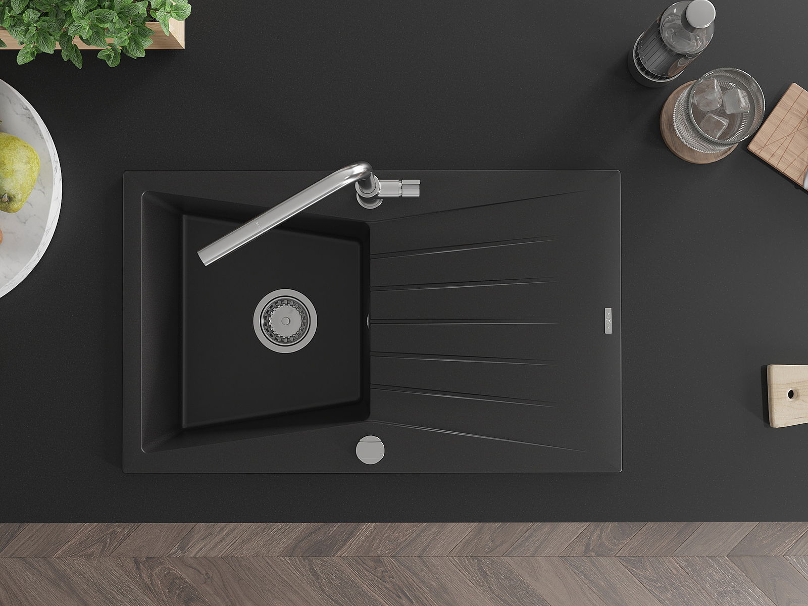 Suprafața chiuvetei este rezistentă la pete și decolorarea, datorită căreia este ușor de curățat și își păstrează culoarea mult timp. Estetică și practic completarea fiecărei bucătării.
