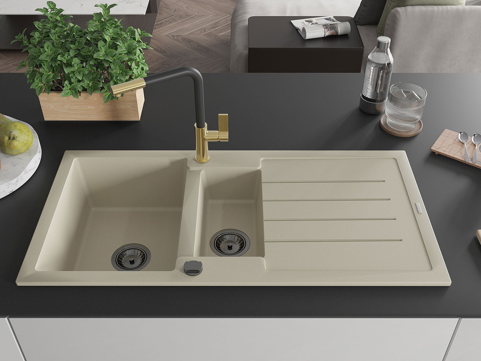 Suprafața chiuvetei este rezistentă la pete și decolorarea, datorită căreia este ușor de curățat și își păstrează culoarea mult timp. Estetică și practic completarea fiecărei bucătării.