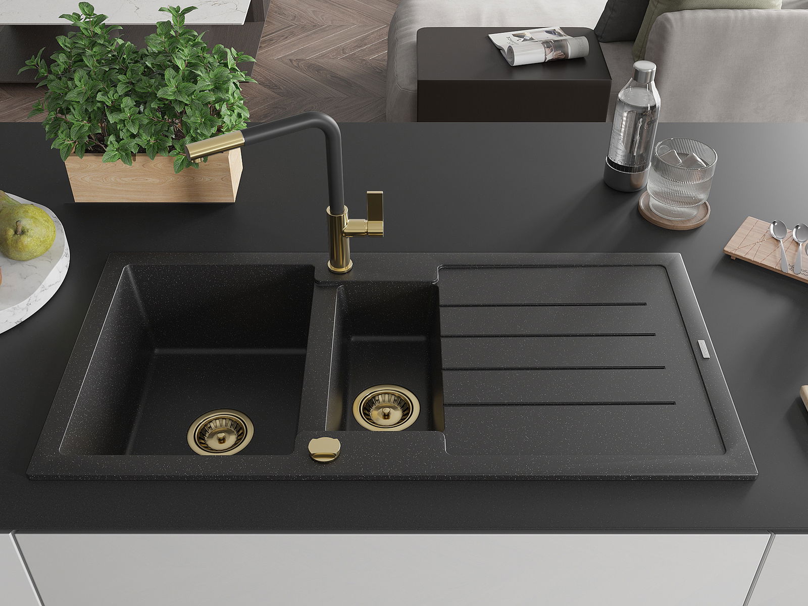 Chiuveta a fost realizată din granit de înaltă calitate. Reprezintă un complement elegant și, mai presus de toate, practic pentru orice bucătărie, indiferent de stilul acesteia. Calitatea înaltă și durabilitatea granitului asigură o utilizare de lungă durată.