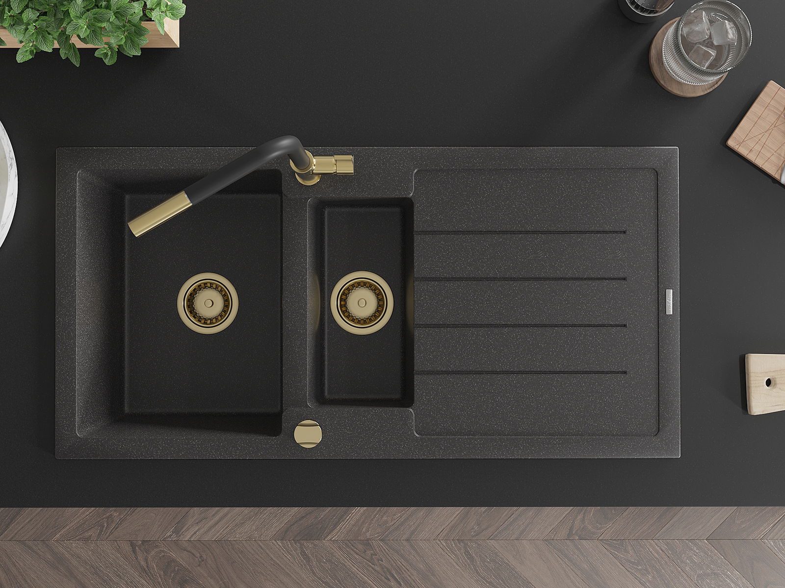 Datorită sistemului de montare universală, chiuveta este reversibilă, iar scurgerea poate fi montată pe blat la stânga sau la dreapta. În acest fel, puteți ajusta cu ușurință pagina la nevoile și condițiile dvs.
