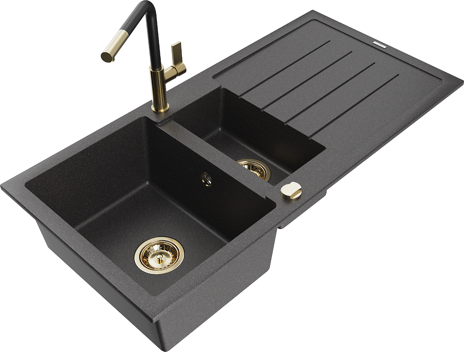 Chiuveta are 2 găuri legate cu un diametru de 35 mm, pentru auto -burst. Pot fi folosite, printre altele Pentru montarea unui distribuitor de lichid care va elimina prezența sticlelor de plastic în bucătărie și îi va oferi un finisaj elegant.